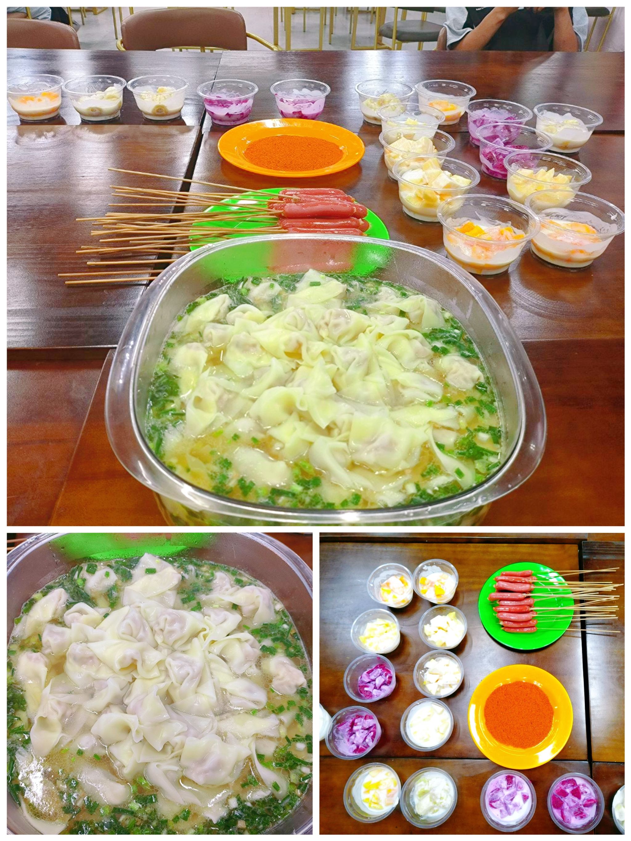 对美食的喜爱,会让你忘了美的界限。美食的浪漫,会让你沉迷于此,而不能自拔,但美食的制作更是一种乐趣和享受,所以本次活动前,大家买好了所有的食物原材料,准备好相应的配料和工具,活动中制作水果捞、烤肠、抄手,让大家在劳动中体验生活的美妙与快乐。