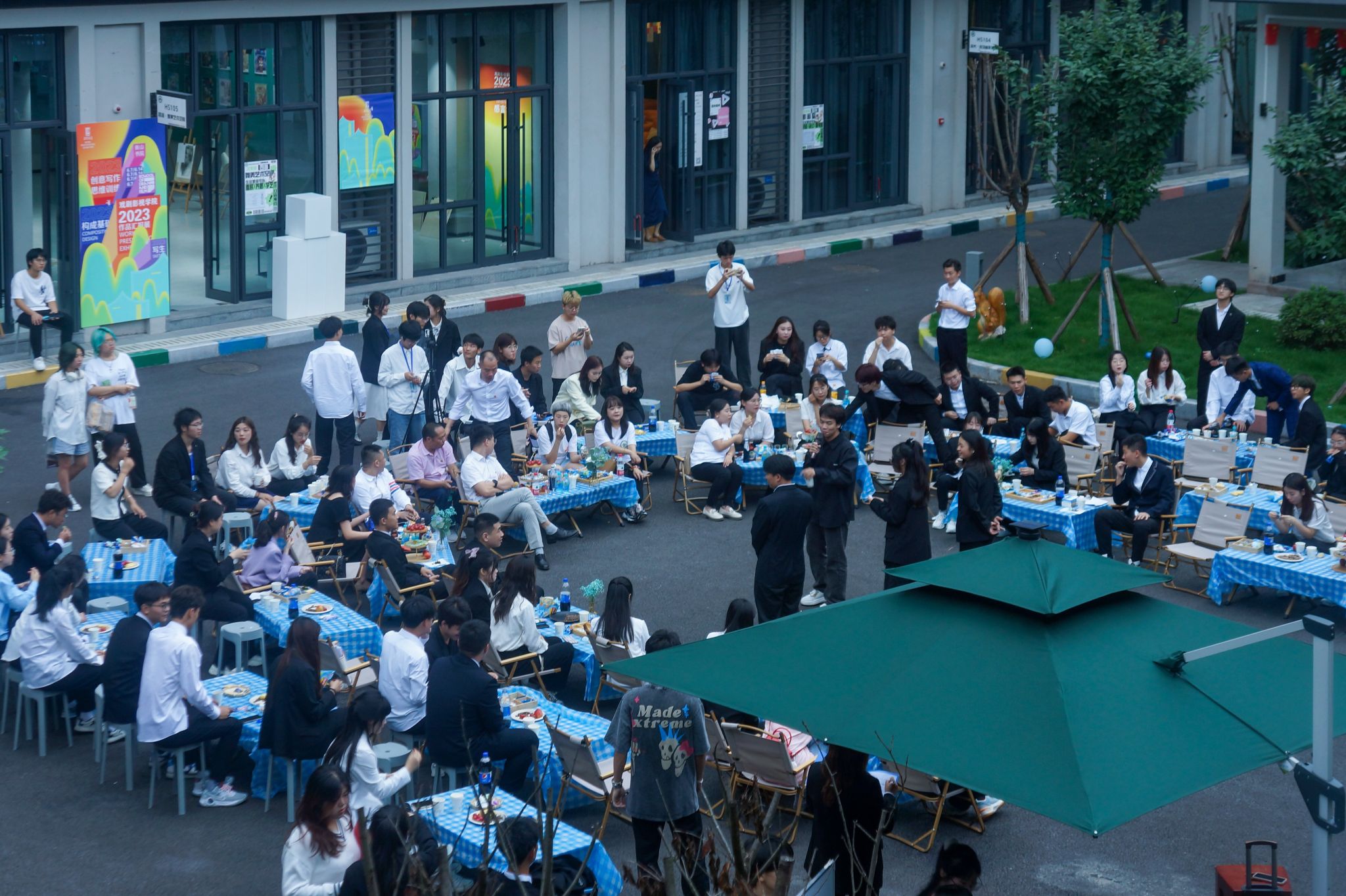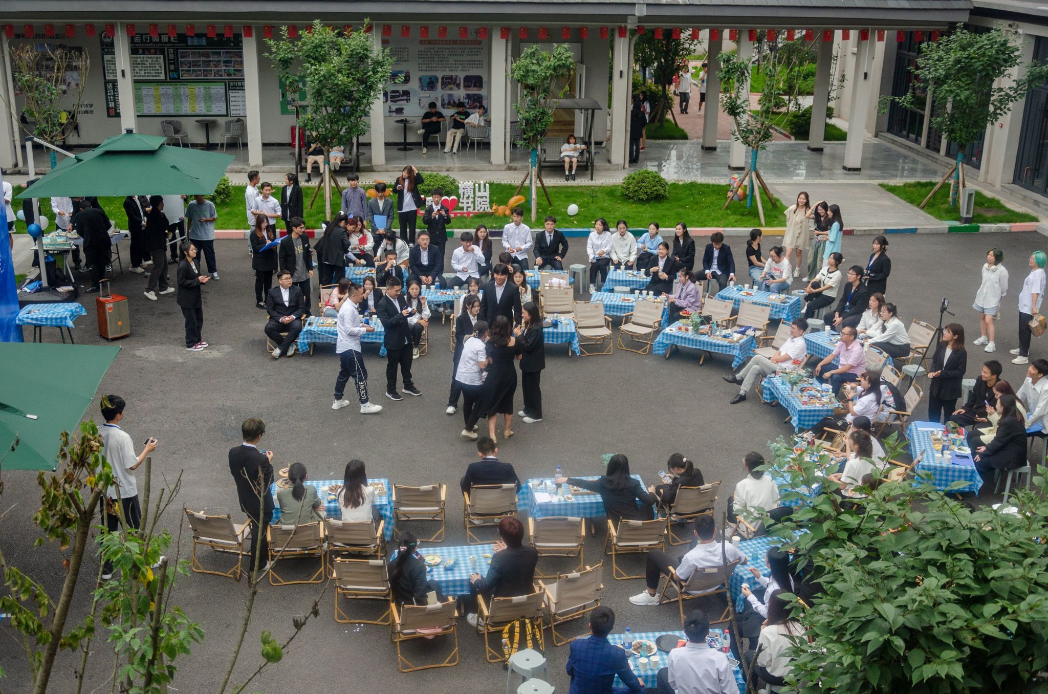 表彰大会结束后,大家井然有序移步到横山书院中庭进行表彰酒会。酒会上,全体老师上前共同切开蛋糕,并和学生代表们合影留念。