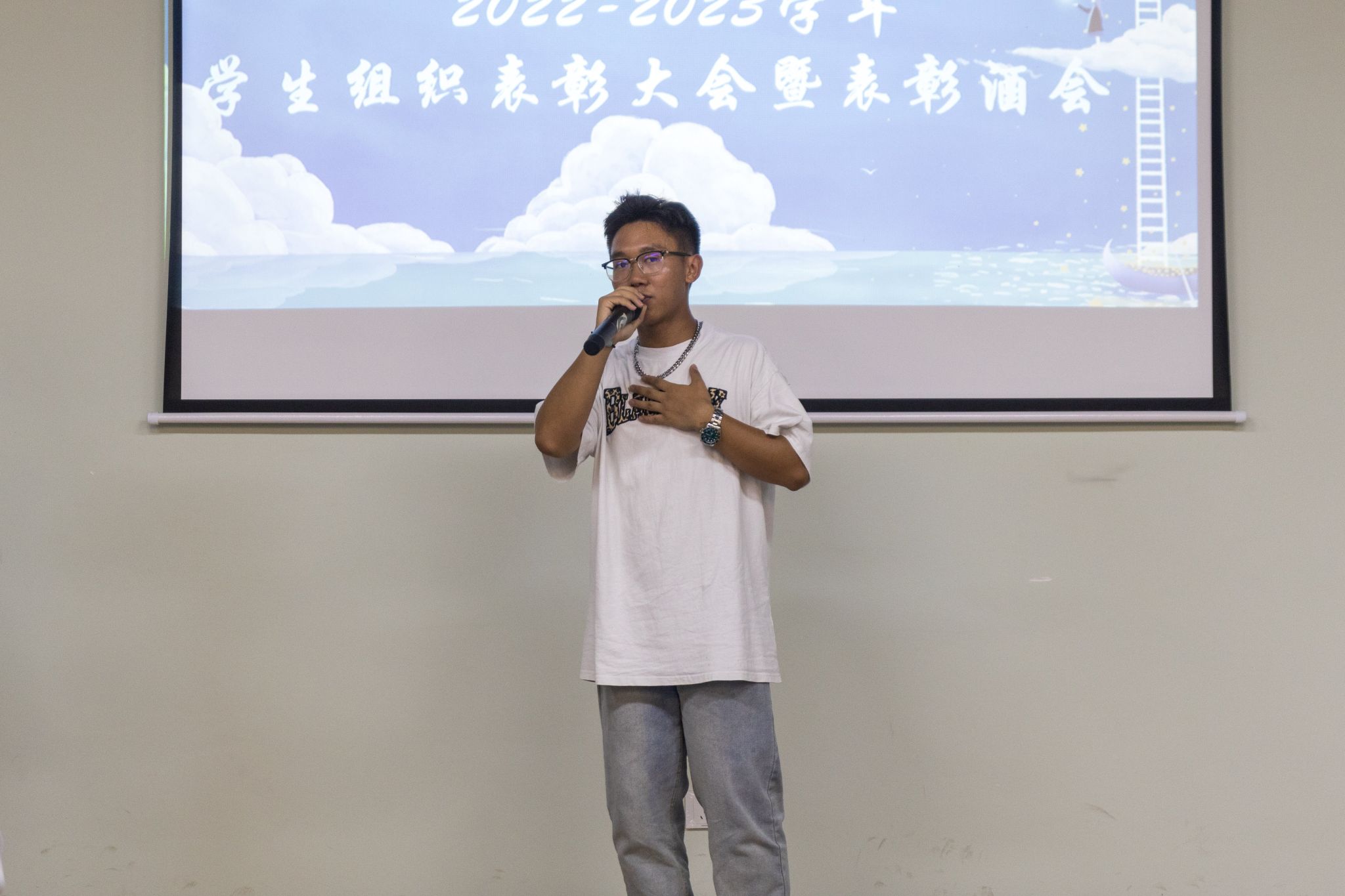 酒会临近尾声,由艺术团的同学带来朗诵《青年说》,声音激情澎湃,热血沸腾,愿我们都保持热爱,奔赴每一场花海!
