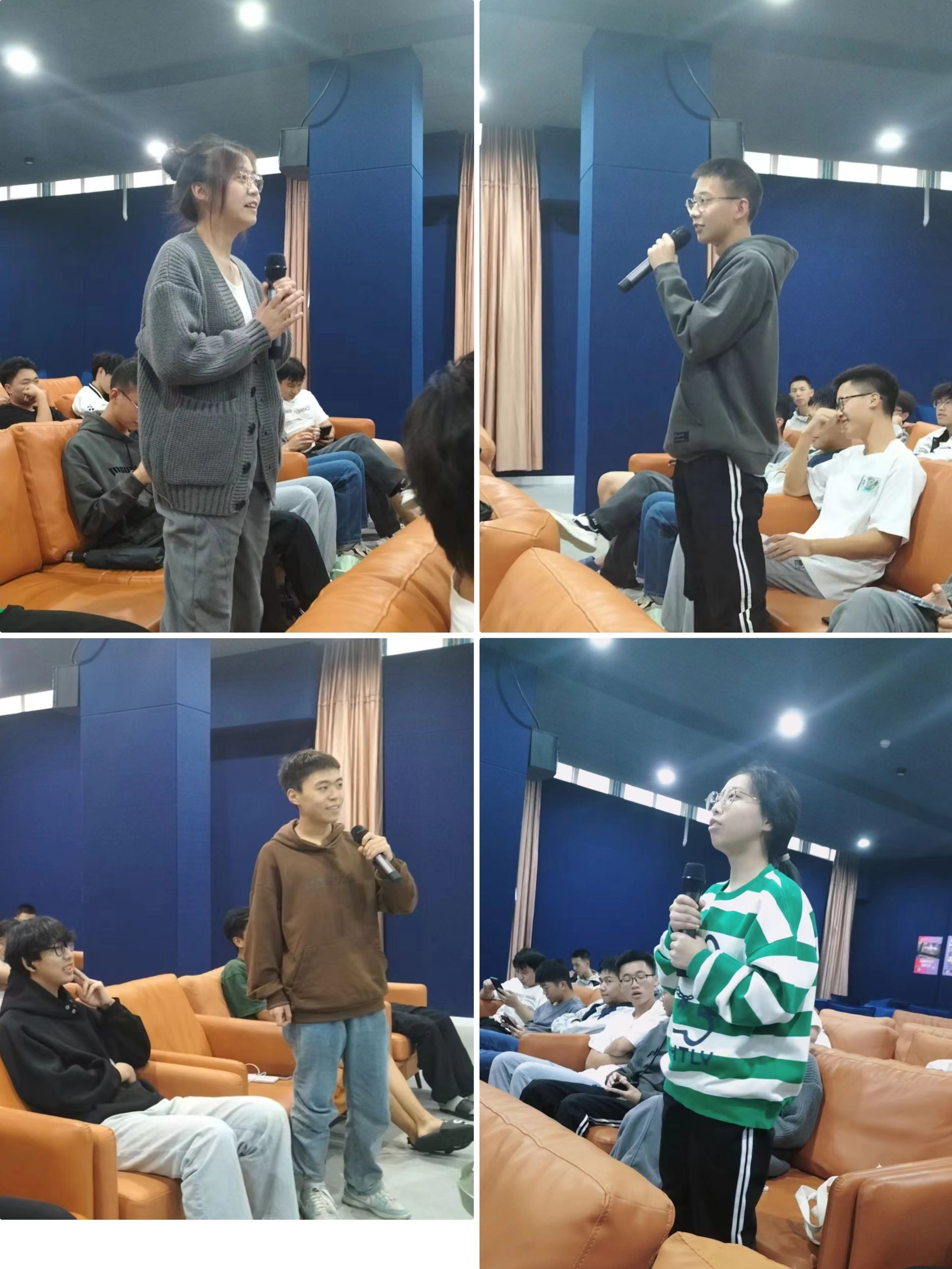 师生互通环节中,陈老师组织同学们开展趣味自我介绍,同学们纷纷以“我是2023级xx书院、通信与信息工程学院的xxx”开始,一一讲述了自己的兴趣爱好、家乡与梦想,伴随着欢笑与掌声,同学们在欢快的氛围中更加了解彼此,志趣相投。