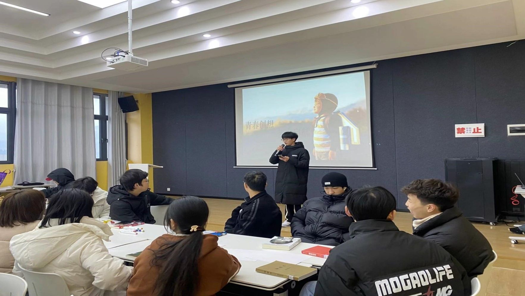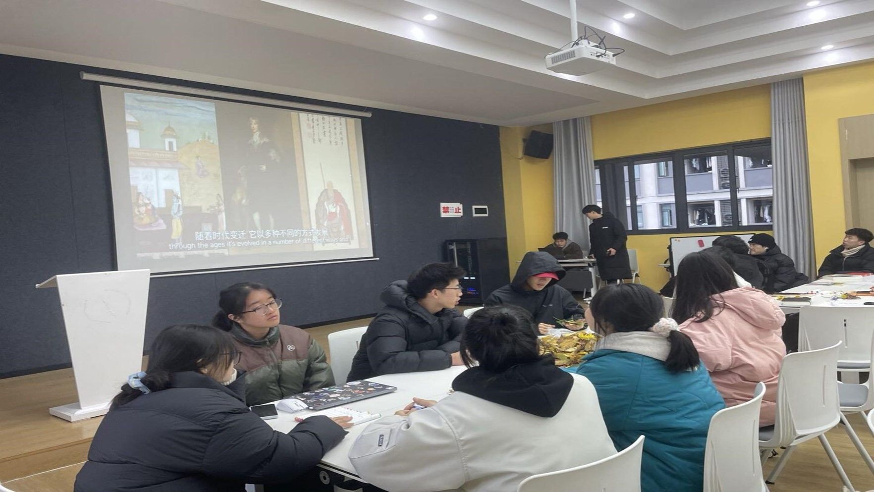 “什么是艺术”主持人向同学们抛出问题。部分同学对于这个问题发表了自己的见解。随后大家通过观看短片了解到了艺术,艺术并不仅仅是娱乐或消遣,它往往具有美学价值或哲学价值,但不一定具有大众层面的娱乐性。每件艺术品都应该有它独特的诉求,这种诉求就是艺术的生命力。通过短片大家对于艺术都有更深的认识,并对于自己所需创作的作品有了新的想法。