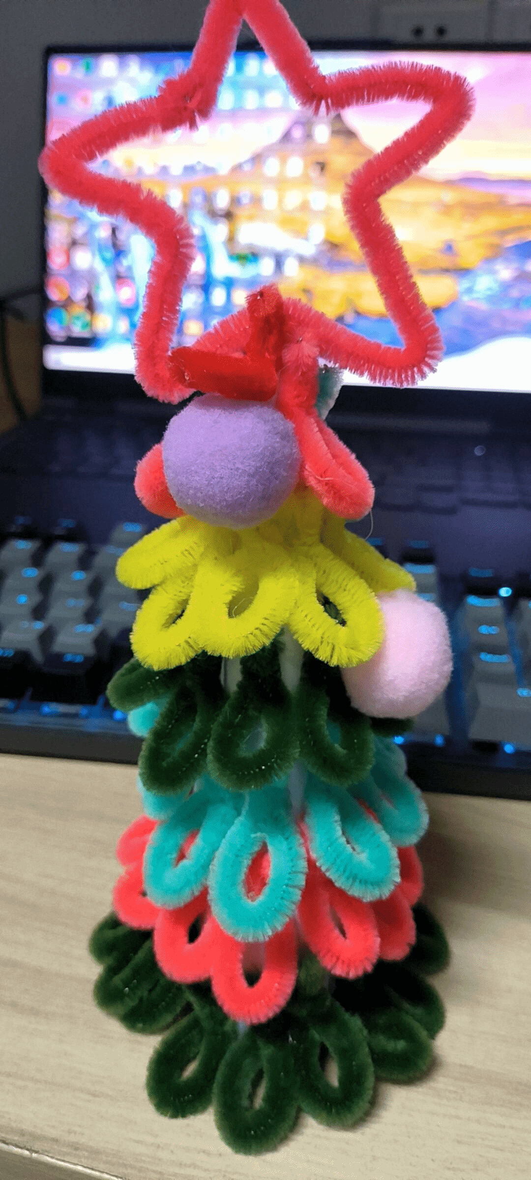 同学们用手机观看教学视频,选择喜欢的扭扭棒挂件形状开始制作。初时略显生疏,可很快发现其中的乐趣,掌握了制作的要领,逐渐沉浸在本次活动轻松愉悦的氛围中。五彩斑斓的扭扭棒在他们巧妙的操纵下,变成了一朵朵缤纷的花朵、栩栩如生的昆虫和动物形象,最终,同学们都成功完成了自己心仪的作品,并纷纷合影留念。