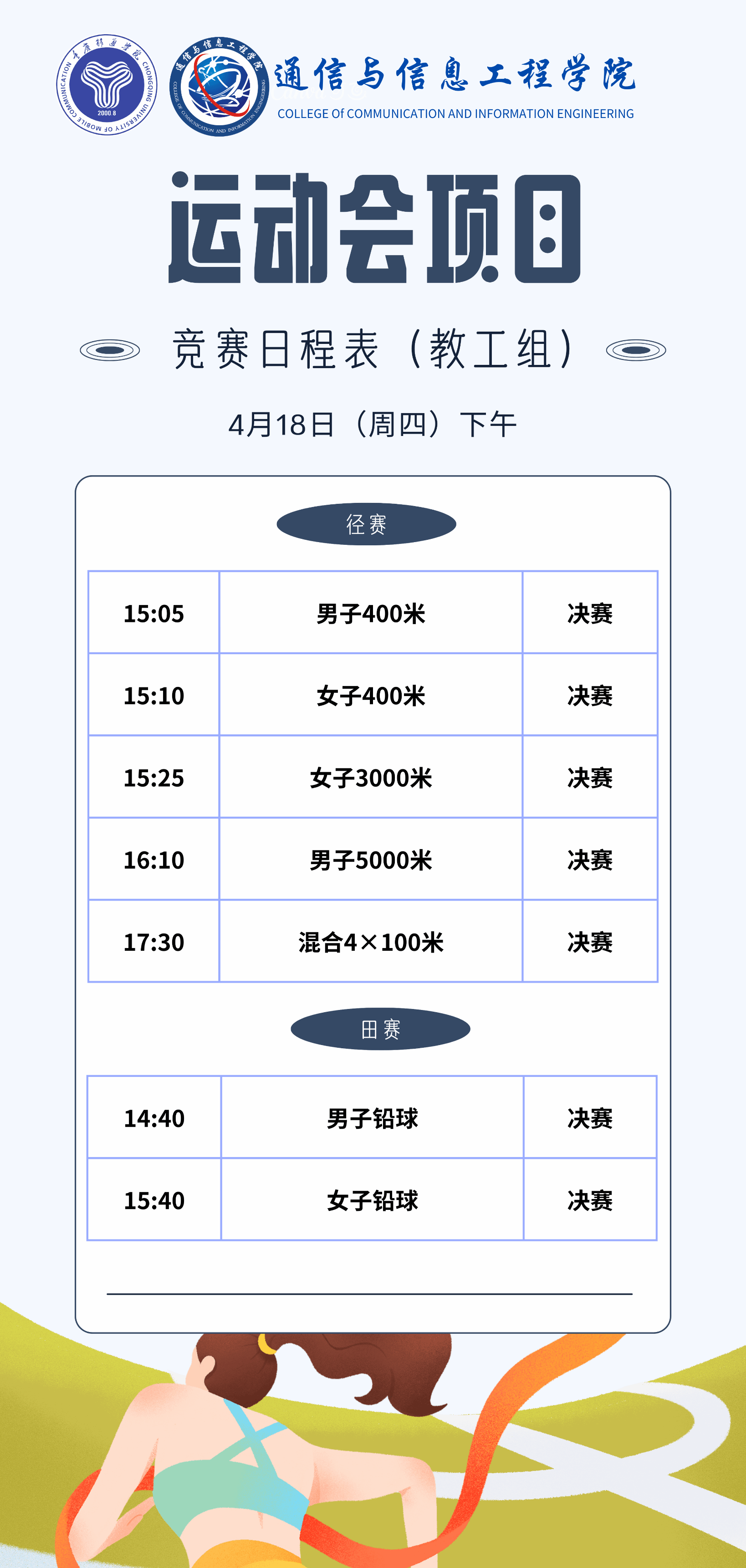 随着春风拂面,万物复苏,我们迎来了一年一度的运动会。此次运动会不仅是一场体育的盛宴,更是展现师生精神风貌、凝聚校园文化的重要平台。2024年4月15至4月17日,通信与信息工程学院的师生们正以饱满的热情,积极投入到运动会的各项准备工作中,共同期待这一体育盛事的到来。