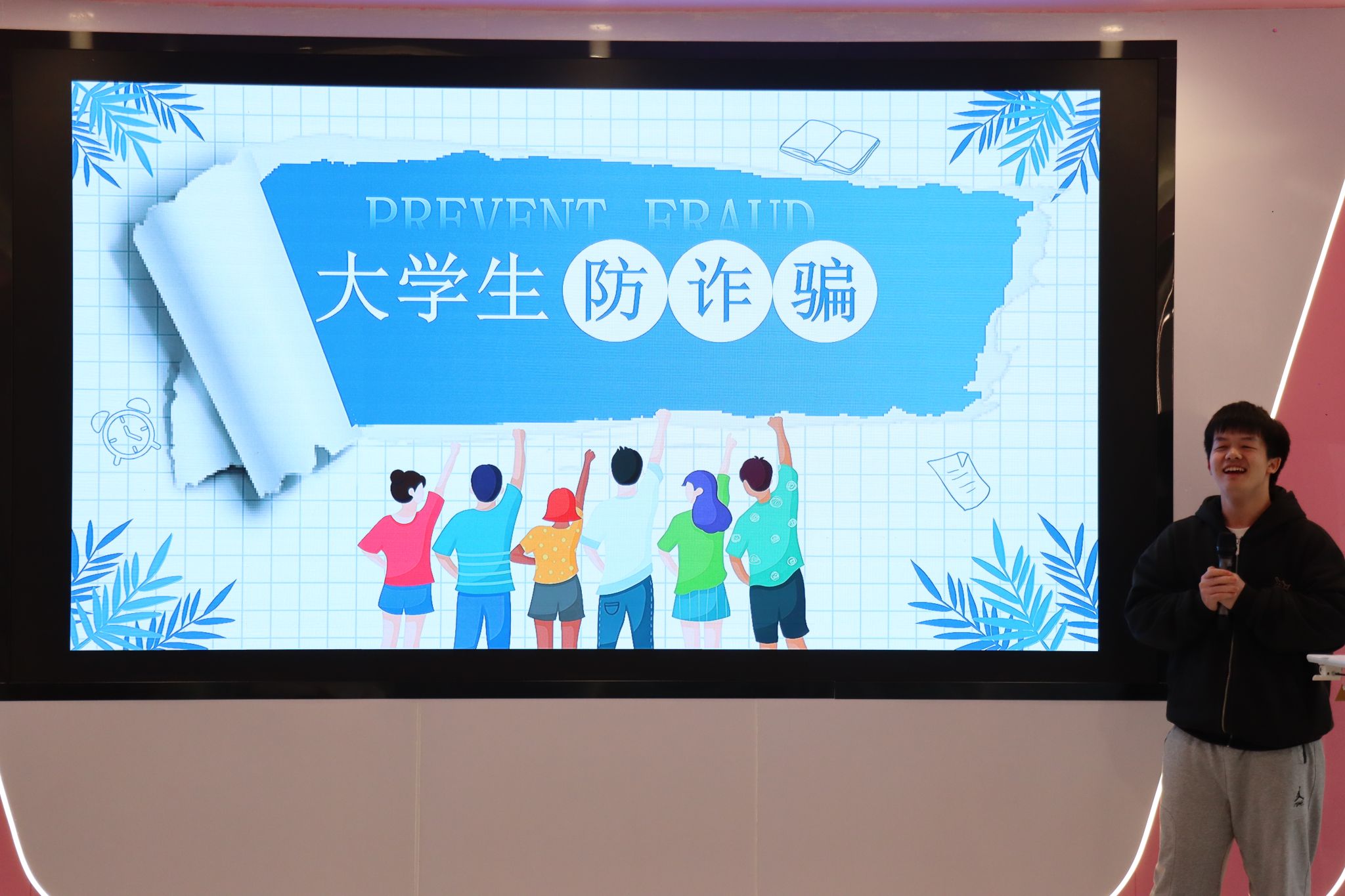 “熟人诈骗”,这一隐匿于信任阴影中的狡黠恶魔,悄然将触手伸向纯真的大学生群体。大学生们,犹如待放的花朵,虽朝气蓬勃却因社会阅历的浅薄与心智的尚未成熟,在全球经济浪潮的冲击与就业压力的围困下,易成为诈骗分子觊觎的目标。所以此次本班班长化身狡黠的诈骗者,于班级群内编织起虚假公司招聘的虚假信息,那周末实习的优厚待遇——包吃包住、丰厚补助,仿若闪烁着诱人光芒的陷阱。宣传会议上,虚假 PPT 展示与班委们的默契配合,将骗局层层渲染。当索要学生证的关键时刻来临,诈骗的狰狞面目初现端倪。所幸,这仅是一场演习,在真相大白之后,紧锣密鼓的是对熟人诈骗及新型诈骗手段的深度揭秘与知识播撒,恰似智慧的清泉,润泽同学们的反诈心田。