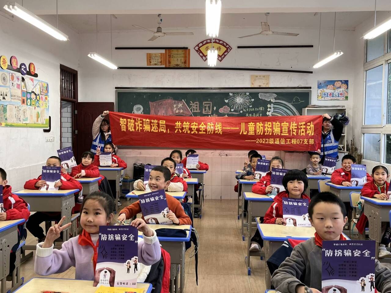 为了增强儿童的安全防范意识,提高自我保护的能力,同时避免拐骗儿童事件的发生,提升家长对儿童防拐骗安全教育的重视程度。2023级通信工程07支部携通信与信息工程学院飞鹰反诈志愿服务专项支队以及大数据学院青年志愿者协会于2024年12月9日开展了“智破诈骗迷局,共筑安全防线——儿童防拐骗宣传活动”。