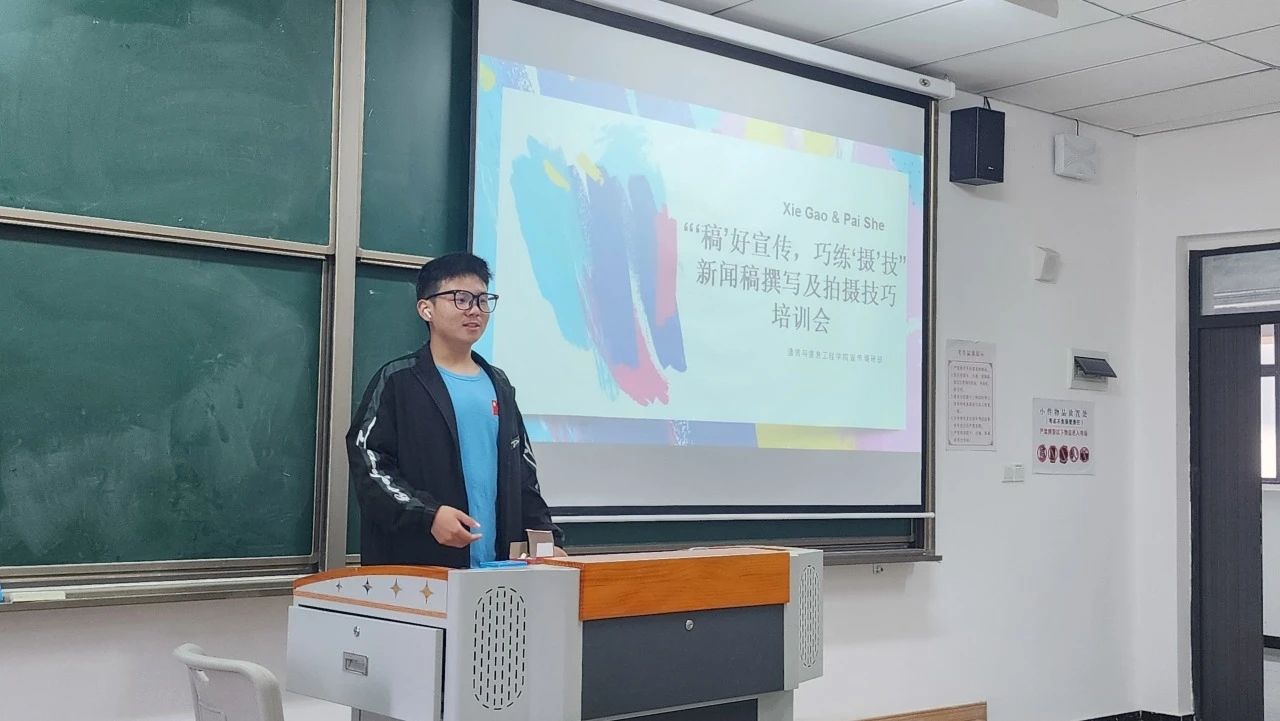 为进一步提升通信与信息工程学院宣传工作的质量与效率,增强新闻稿的吸引力与拍摄的专业性,树立学院的良好形象。团总支宣传调研部于2024年10月9日12:00在行者楼203开展了一场“‘稿’好宣传,巧练‘摄’技”新闻稿撰写及拍摄技巧培训会。会议由学工办主任胡戈立老师主讲。