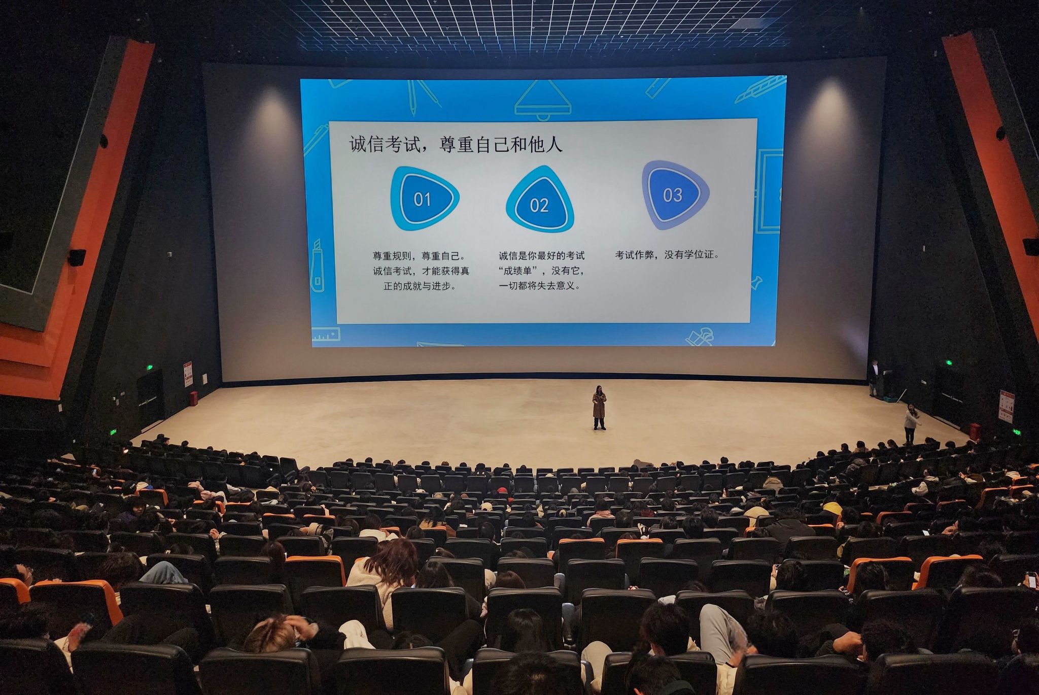 为此,全场观影了学风建设短视频《大梦初醒,我没有作弊!》,警醒同学认真对待近期的英语四级及即将到来的期末考试。