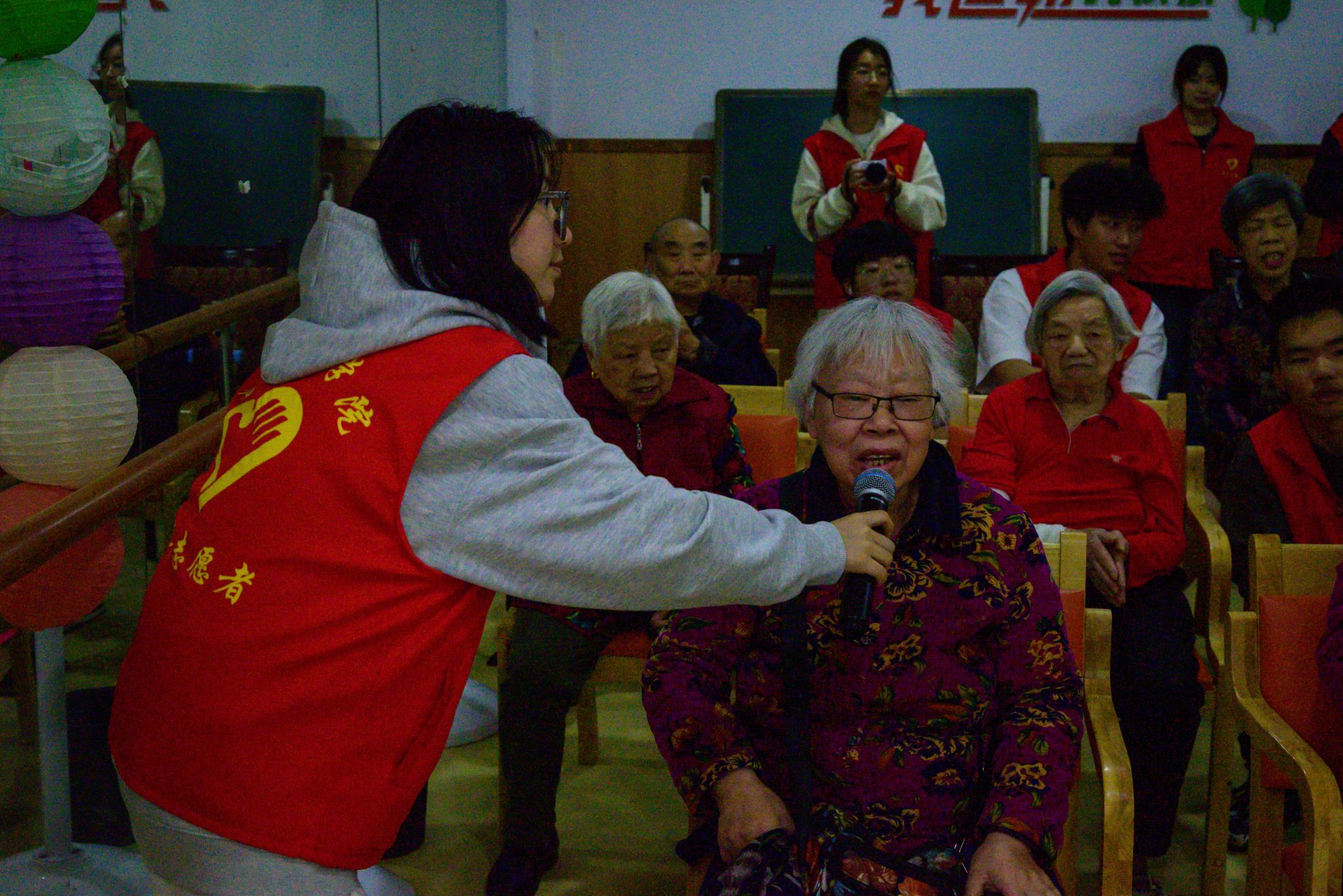 在“金曲咏流传”卡拉OK环节,志愿者学生不再是单纯的表演者,而是成为“音乐疗愈师”,通过声波频率分析与互动演唱,探索音乐对老年情绪的调节作用;摄影团队的学子则化身“视觉叙事者”,运用人像摄影课程中的光影技巧,将长者的皱纹与银发转化为镜头下的“岁月史诗”。“这不仅是一次服务,更是一堂鲜活的‘田野课’。”参与学生感慨道。
