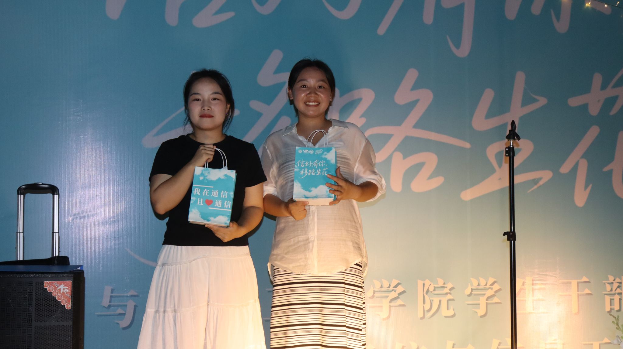 作为活动压轴环节,抽奖活动让全场充满期待。随着一个个获奖学号的公布,现场不时爆发出惊喜的欢呼声。未中奖的同学也收获了学院精心准备的纪念品,每一份礼物都承载着对綦江校区美好时光的纪念。而学生代表也为各位指导老师送上鲜花表达谢意。在这个告别的夜晚,惊喜与温暖交织,为同学们的大学生活又增添了一抹亮色。