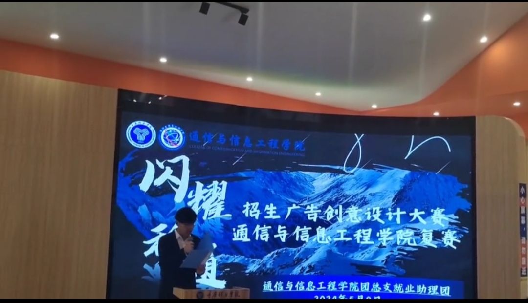 2024年5月9号中午12点30分,第六届“闪耀移通”招生广告创意设计大赛通信与信息工程学院复赛在古剑书院含光报告厅成功举办。本次大赛旨在通过原创拍摄和别出心裁的设计来凸显学校的独特魅力,同时也期望通过此次大赛对参赛选手的作品进行细致的指导,使作品更上一层楼,为同学们的创作提供有益的助力,让他们作品质量能得到显著的提升。自大赛拉开帷幕以来,学院进行了广泛的宣传,吸引了大量学生踊跃参与。经过初赛环节的激烈竞争,通信与信息工程学院成功筛选出七支队伍,晋级至复赛阶段。这些队伍的作品风格各异,包含了海报、视频、动画等多种创意形式,充分展现了学生们的创新灵感和独特思维。