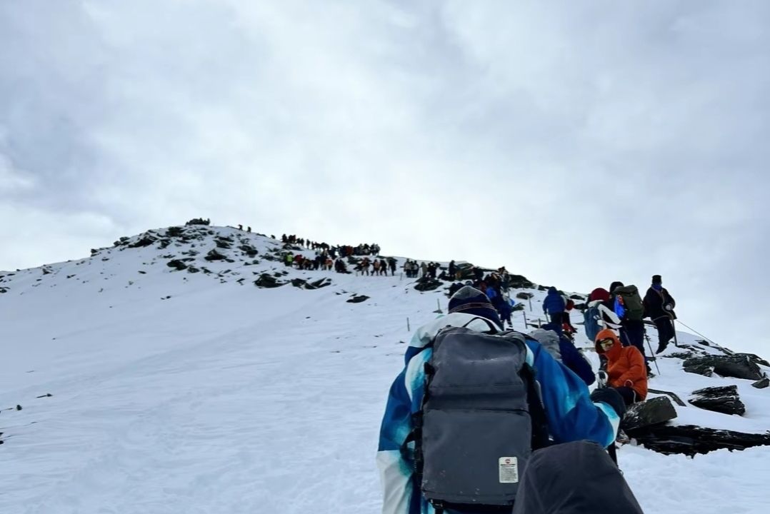 品鉴:在雪山之巅,人群成龙,是勇气与毅力的挑战,是青春献给雪山的礼物,加油,勇敢的先享受世界。)