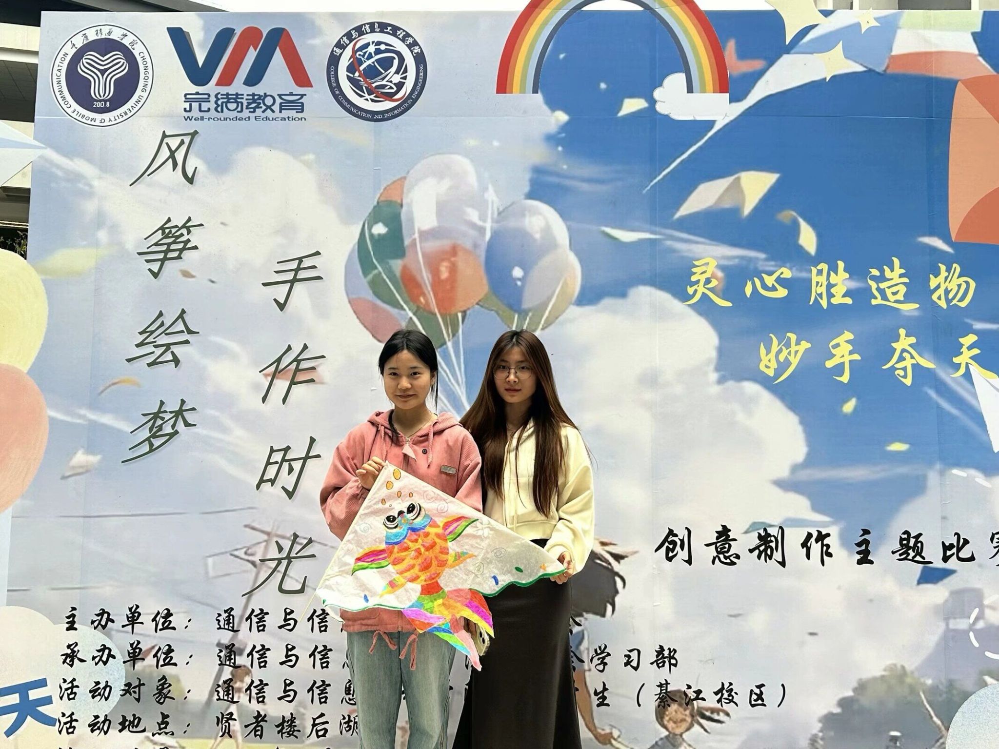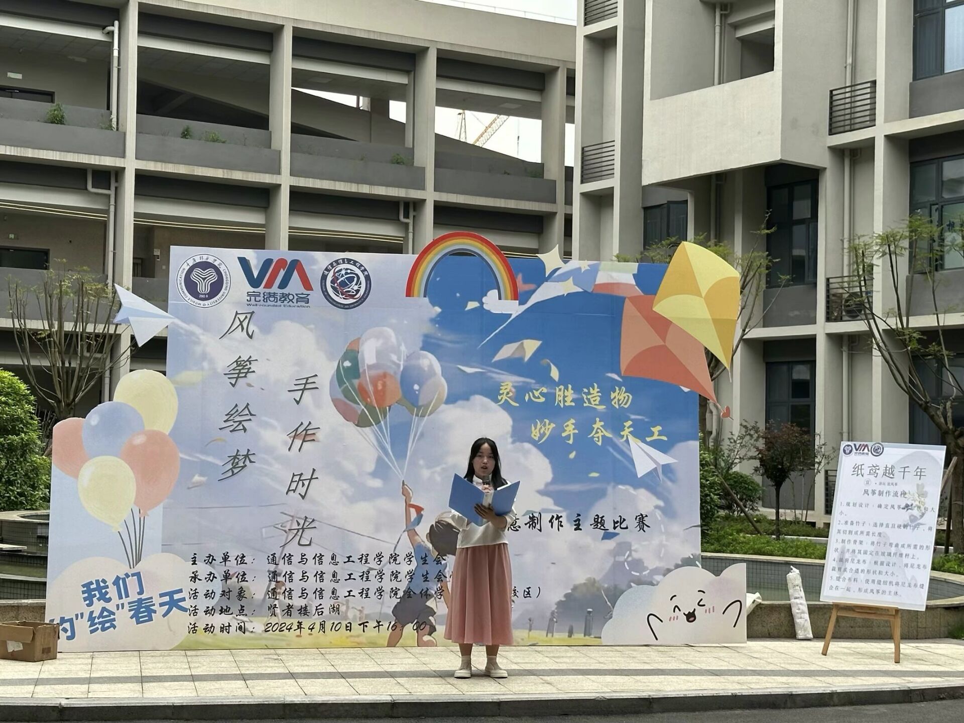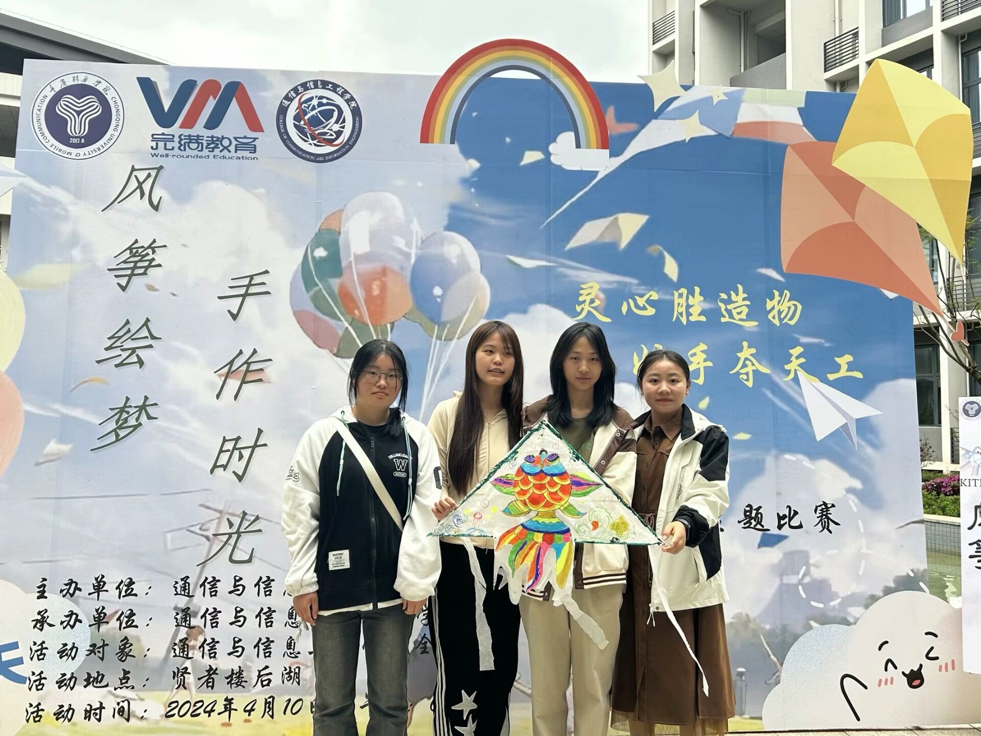 风筝作为民俗文化之一,在我国有着悠久的历史,古人常用风筝做诗吟句“草长莺飞二月天,拂堤杨柳醉春烟,儿童散学归来早,忙趁东风放纸鸢。”每年阳春季节,更是放风筝的最佳时节。为了让同学们通过亲手风筝的方式来了解中华民族悠久的风筝文化以及更好地让风筝文化得以传承,通信与信息工程学院学生会学习部特此于2024年4月10日16点在贤者楼中庭举办了“风筝绘梦,手作时光”创意制作主题比赛。