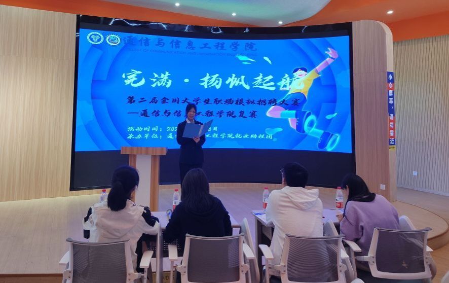 当今社会处在变革的时代,各处充满着激烈的竞争。物竞天择,适者生存,职场中亦是如此。为提高大学生的综合素质与职业面试技巧,让同学们挑战自我,提升求职经验和信心,积累面试经验,增强竞争意识,通信与信息工程学院就业助理团于2024年3月28日中午12:30—13:30在古剑书院含光·报告厅举办了第二届全国“完满·扬帆启航”大学生职场模拟招聘学院复赛。本次大赛共吸引11位选手和30名观众前来参加。