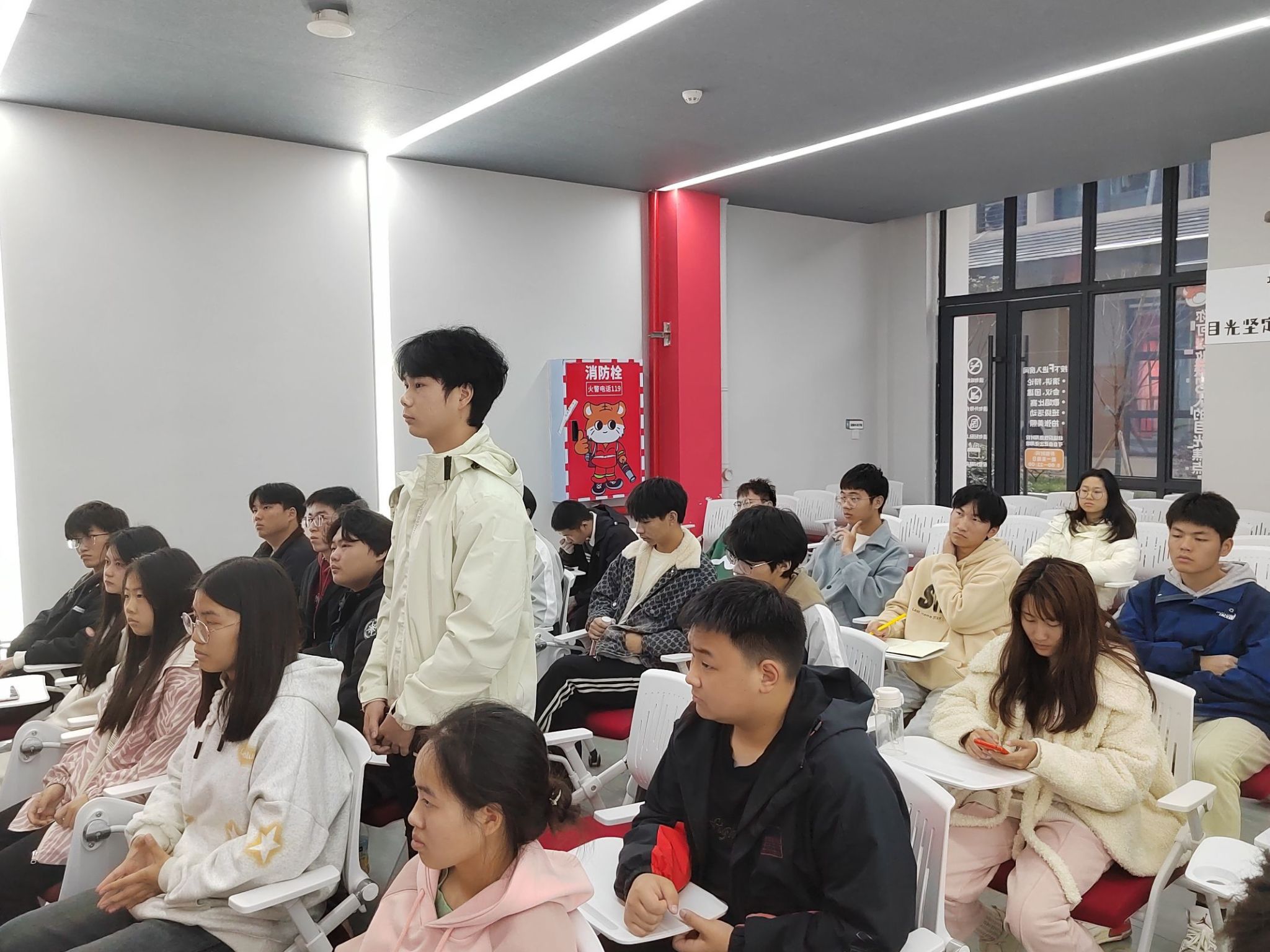 提问环节,其中有同学积极提到:“我在生活中朋友不多,我不怎么会说话,一般情况下也不会主动找他人说话,一说话就怕说错话,这种情况应该怎么办?”杨老师耐心解答:“首先在这种情况下,我们试着改变自己,大胆与人沟通,这是第一步,敢于迈出第一步,其次,学会聆听;最后,学会夸赞他人,每个人都喜欢收到好的评价。”
