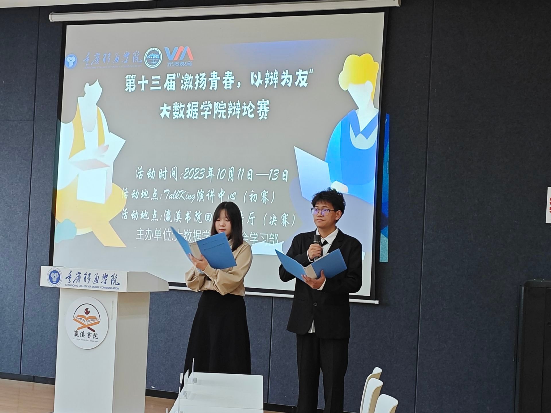 三寸之舌,百万雄兵;我言一出,谁与争锋。辩论赛是思想与语言碰撞的火花,也是灵魂交流的升华。为增强学生的语言表达、沟通交流、应变能力以及思辨能力,培养团队合作的精神,由大数据学院学生会学习部举办的“激扬青春 以辩为友”第十三届辩论赛(决赛)于2023年10月13日14:00-16:00在瀛溪书院回声报告厅举行。出席本次活动的嘉宾有大数据学院团总支书记兰宇老师,大数据辅导员汪鑫老师,以及特邀嘉宾计算机学院的潘叙言老师。本次辩论赛的辩手们展现出了非凡的口才和思维能力,为观众们奉献了一场精彩绝伦的辩论盛宴。