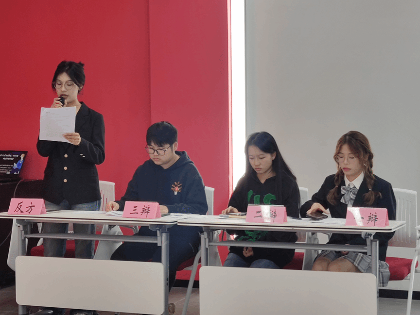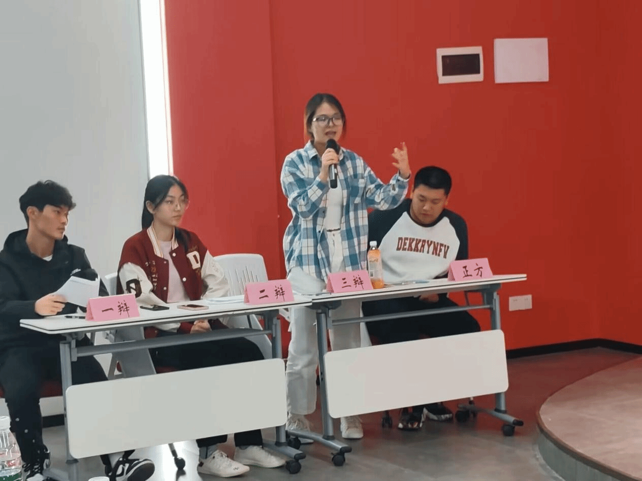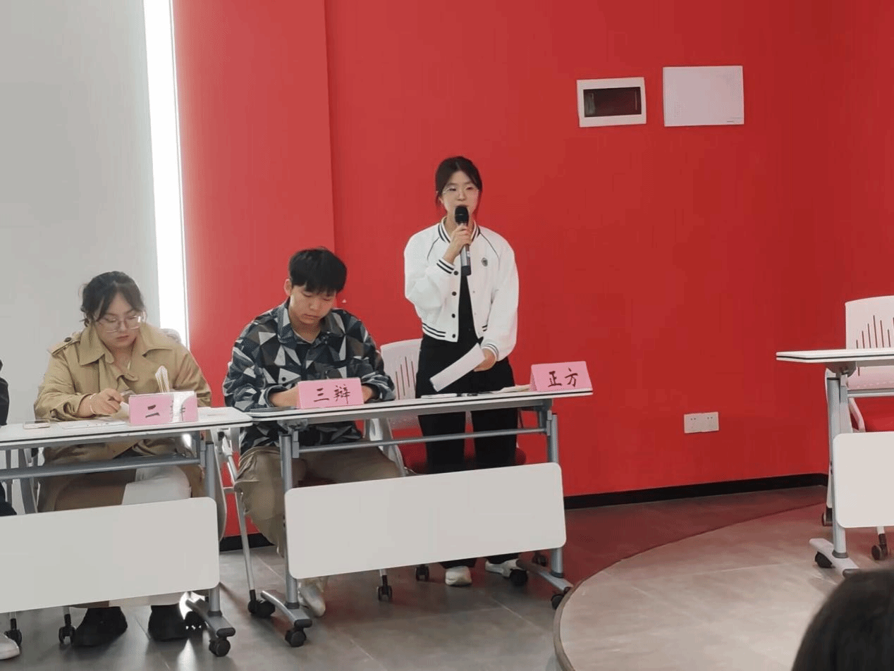 第一场,正方提出:“躺平对于当代青年是解药”,反方则提出:“躺平对于当代青年是毒药”。该辩题紧扣学生生活,其不仅结合了当代年轻人的疑问,更紧系时代主题。活动开始举行的如火如荼,正反方舌战群儒,不分伯仲。辩手们通过比赛不仅锻炼了辩论能力,更对爱与被爱的关系进行了深入思考,理智分析。