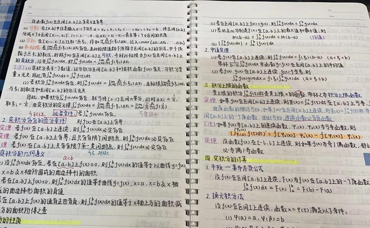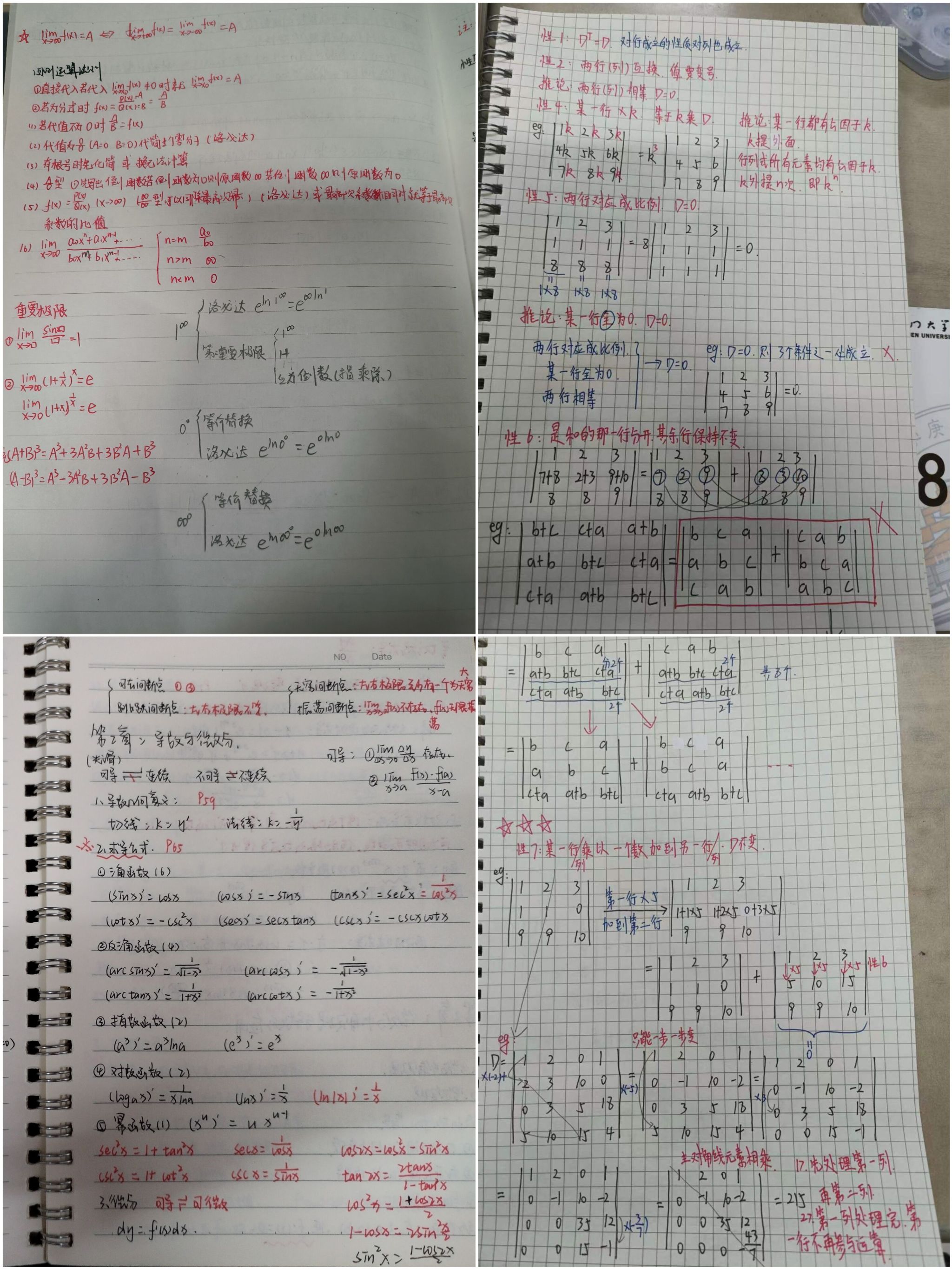 数字文化具有审美性,数字充满美感,蒙娜丽莎的黄金分割比例,最美公式之一欧拉公式等,不仅有创造美,而且有逻辑抽象美。每位同学的笔记内容里都展现了高数的魅力,条理清晰,知识点概括的非常广泛,毋庸置疑,所有人都爱上了可爱的高数。
