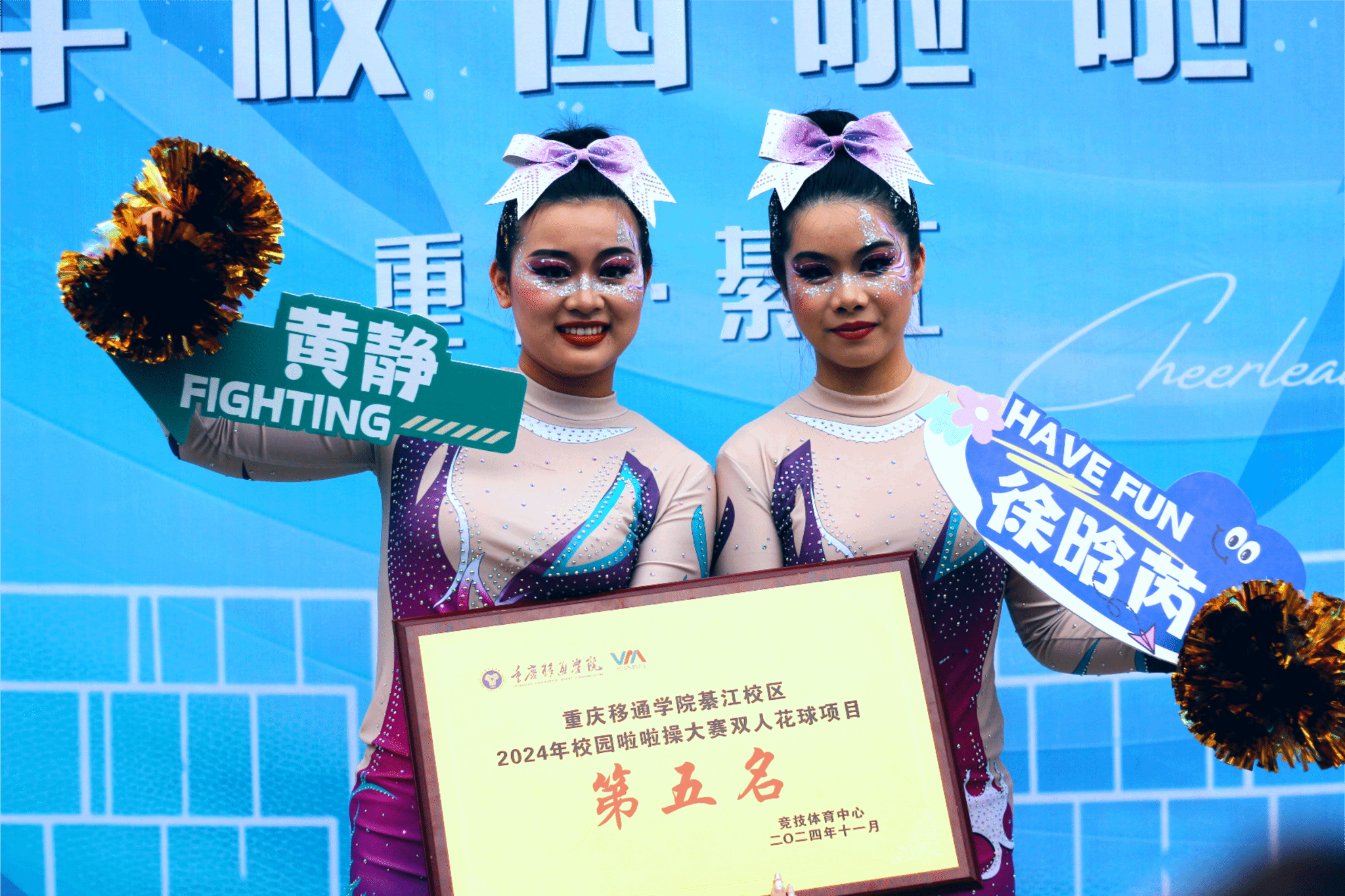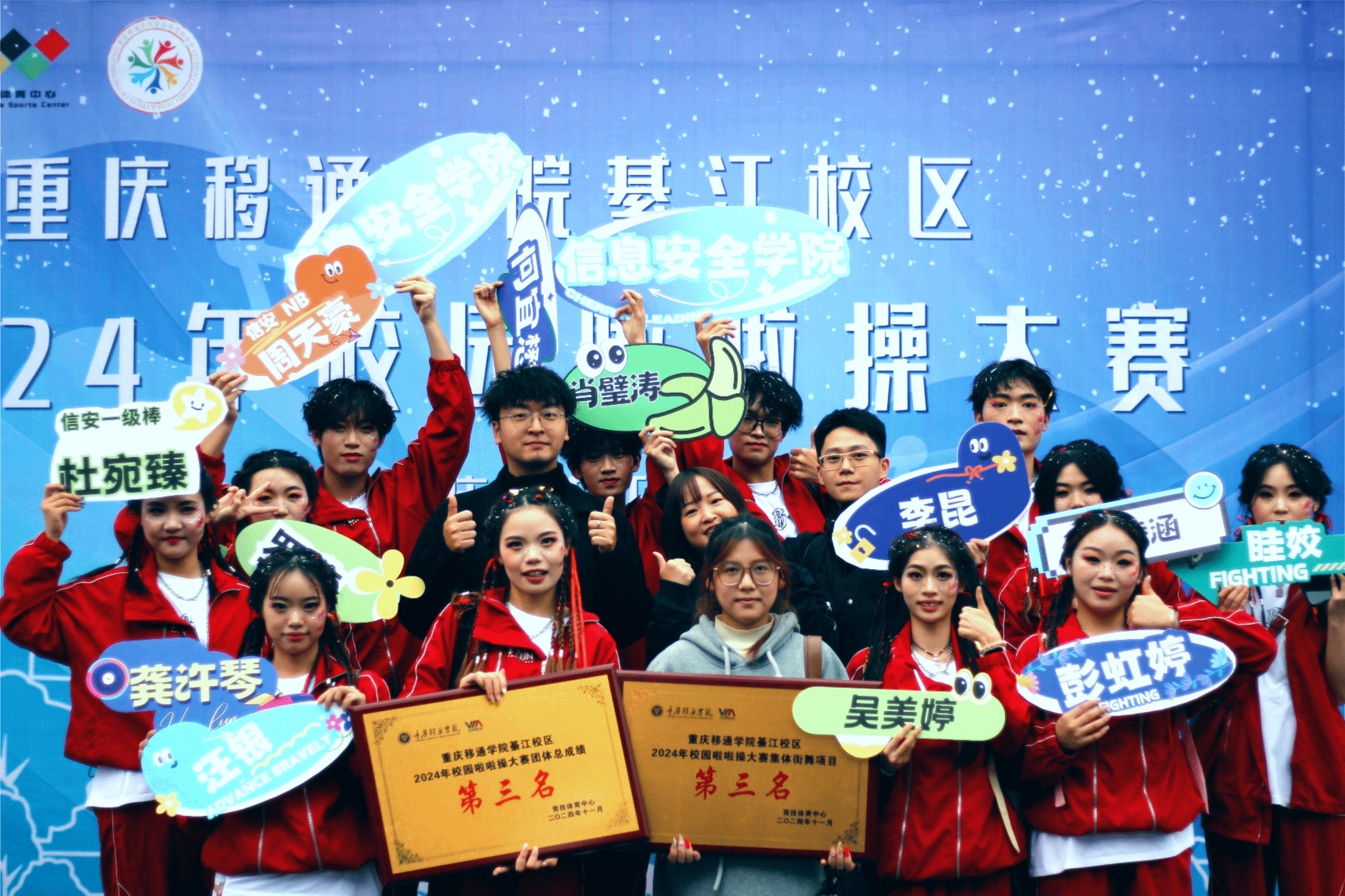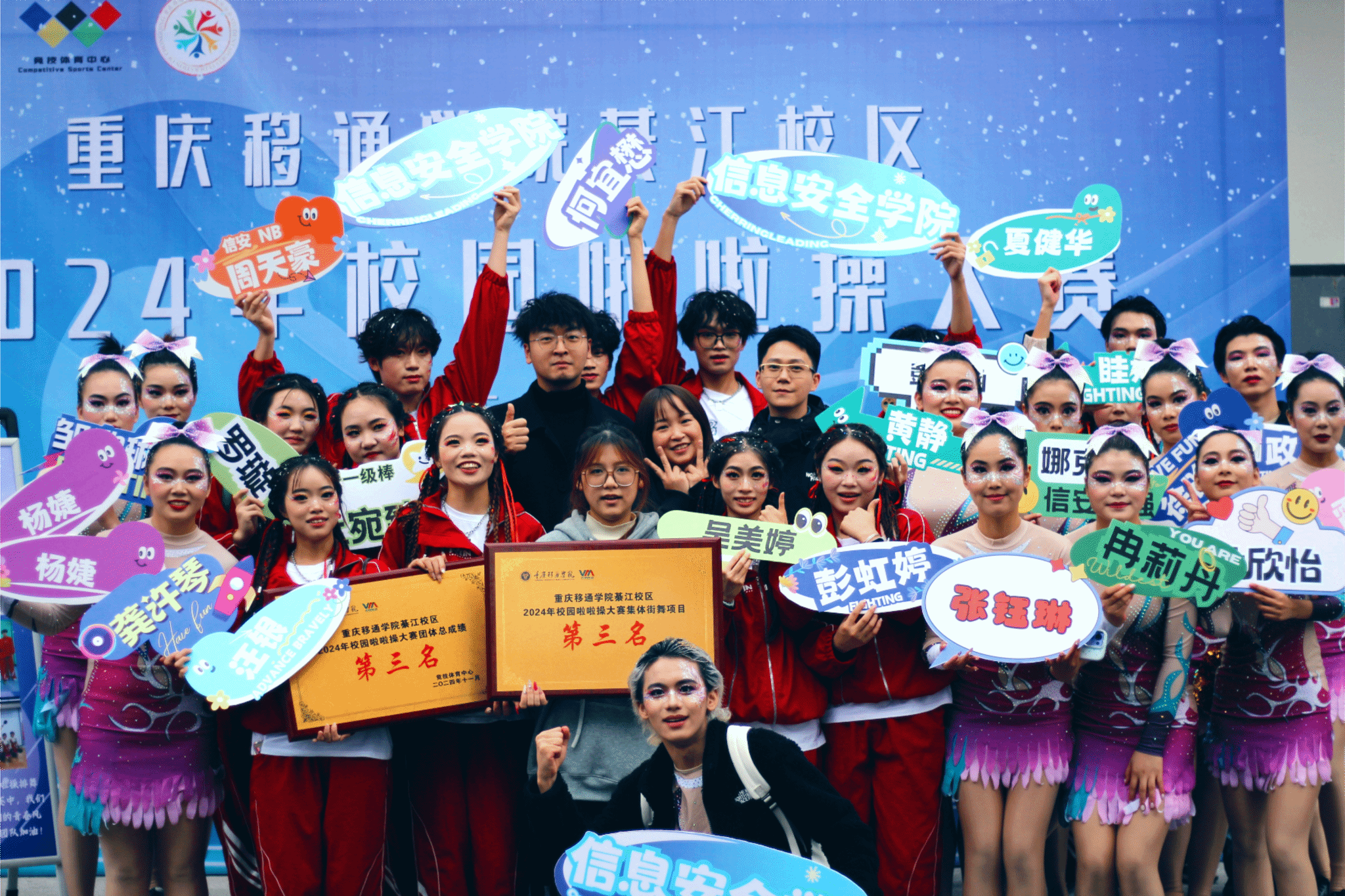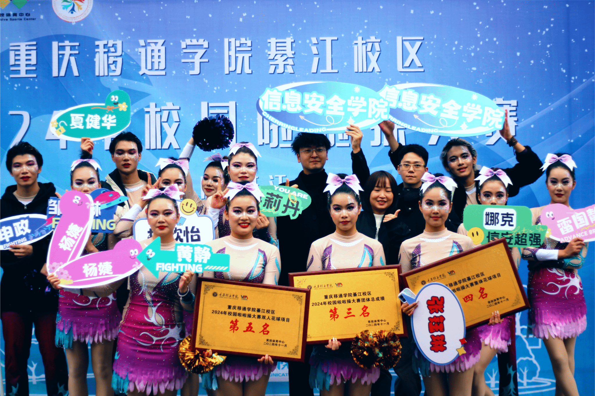 这是一场汗水与泪水的交织,这是一段青春与梦想的燃烧。11月22日,信安健儿如同璀璨的星辰,在2024年校园啦啦操大赛的舞台上闪耀全场!双人花球舞动得如同绚烂的花朵,团体花球则好似那缤纷的彩虹,而团体街舞更是酷炫到爆表,信安健儿们不仅分别斩获了第五、第四和第三名,更是以总成绩第三名的霸气姿态,收割了无数掌声和尖叫,为信安荣誉簿再添浓墨重彩一笔!