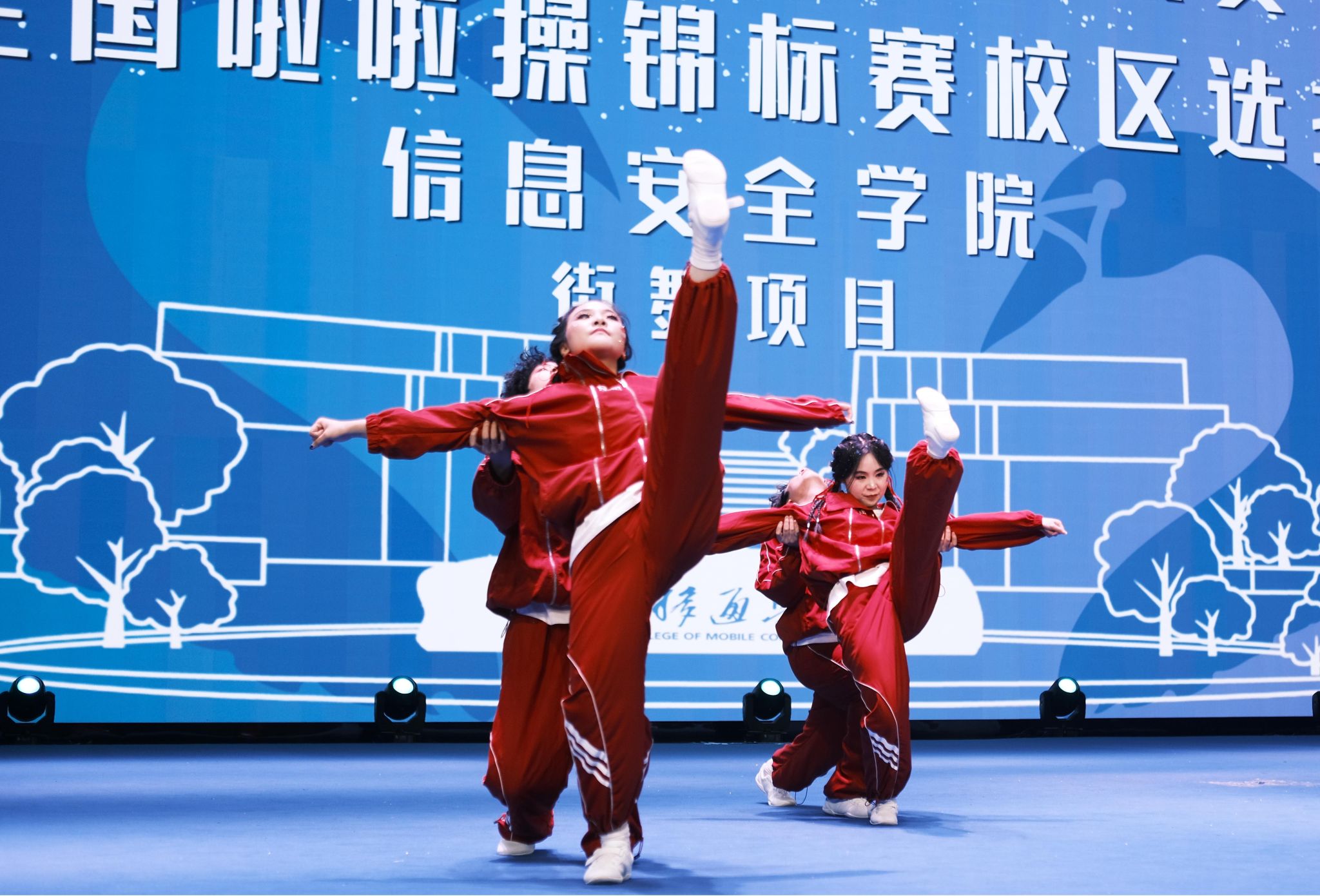 2024年校园啦啦操大赛的舞台上,信安健儿们以璀璨夺目的舞姿,赢得了满堂喝彩。他们的每一次飞跃、每一个华丽转身,都是对幕后无数汗水与努力的最好诠释。这场比赛,不仅彰显了他们高超的艺术造诣,更是信安健儿们坚韧不拔精神的生动展现。让我们为他们的辉煌成就鼓掌,为他们的灿烂前程祝福,相信在未来的日子里,他们将继续以昂扬的姿态,迎接新的挑战,创造新的辉煌!