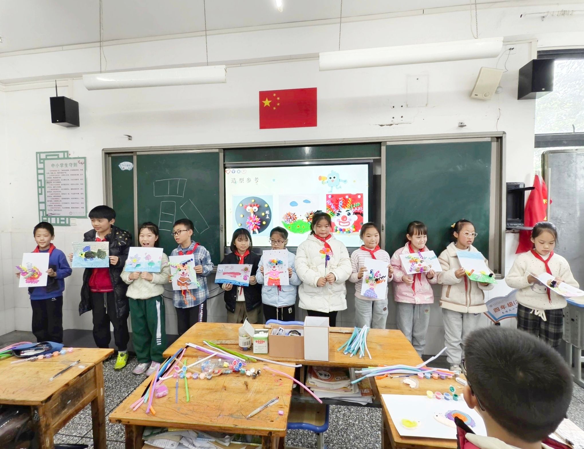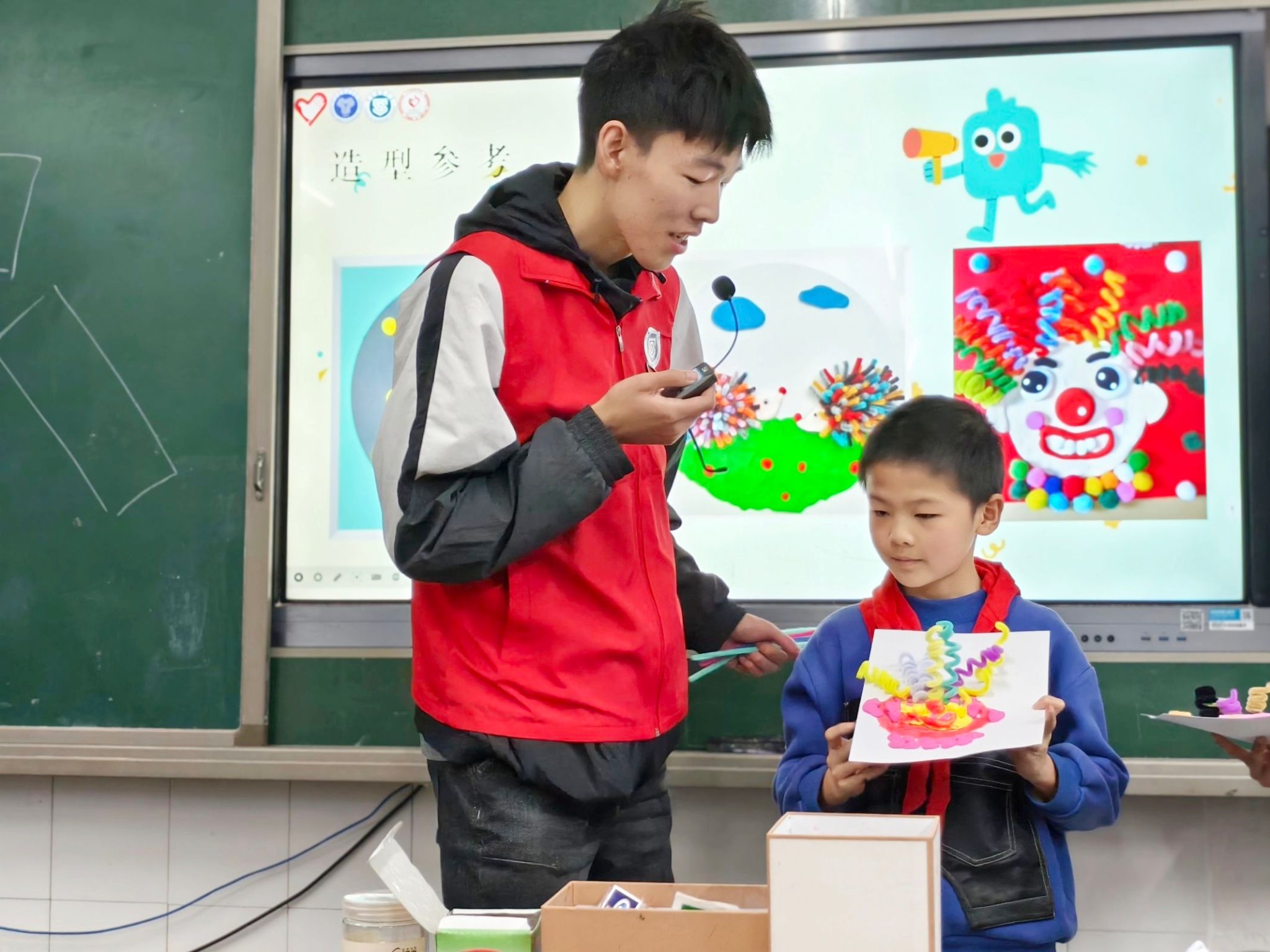 风拂浅寒,志愿者们早早集合在重庆移通学院校门前,整装待发,等待着发往文龙小学的班车。在孩子们欢快的笑声中,志愿者缓步踏入校园。主讲“小老师”怀着激动的心情走上讲台,他将一页页精美的PPT与有趣的视频呈现在孩子们的眼前,以童趣盎然地口吻向小朋友们介绍手抄报和黏土绘画的基本知识。这不仅打开了小朋友通往绘画与艺术的大门,更增加了小朋友们对绘画知识的了解,让他们对艺术有了一定的“嗅觉”。