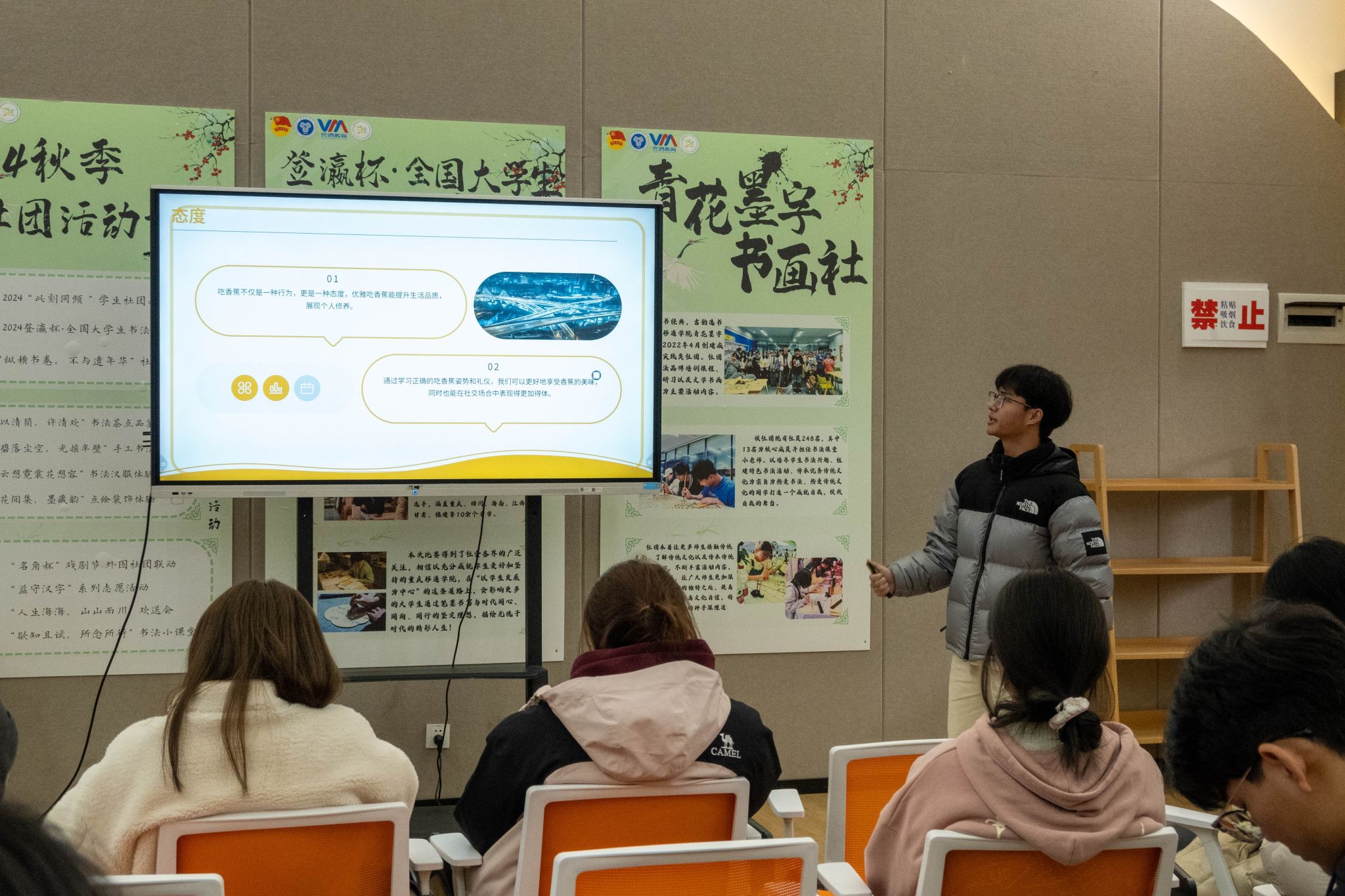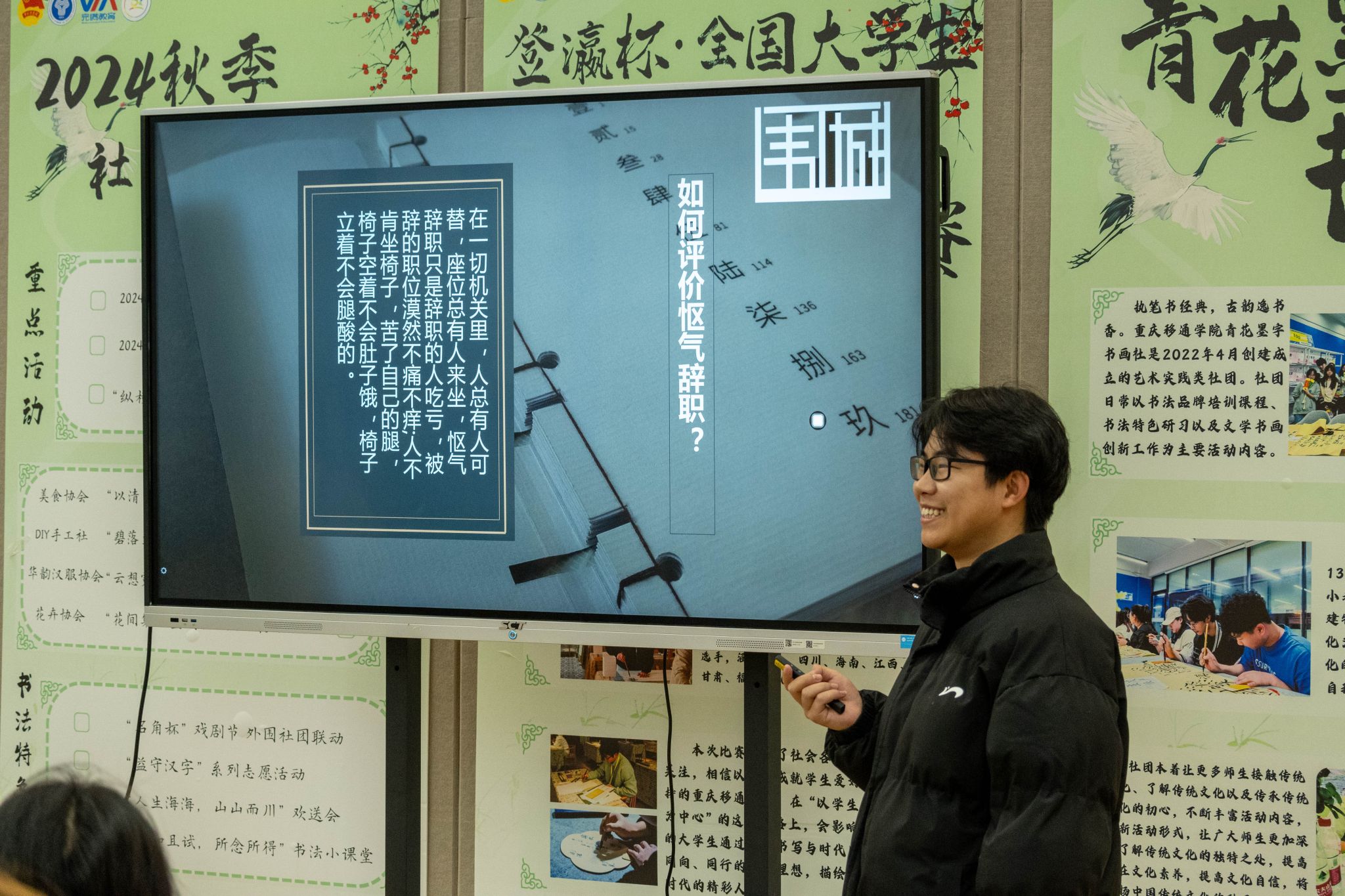 智者顺时势,识者应事机。应变力,前瞻思维之本。为锻炼学生快速思维、应变技巧及前瞻思维,提高分析问题、创新解决方案的能力,同时培育快速信息整合与趋势预测的素养,“青马工程”完骨中阶3班携手瀛溪书院,于瀛溪书院很正式研讨室举办“挑战强心脏”PPT即兴Talk Show。