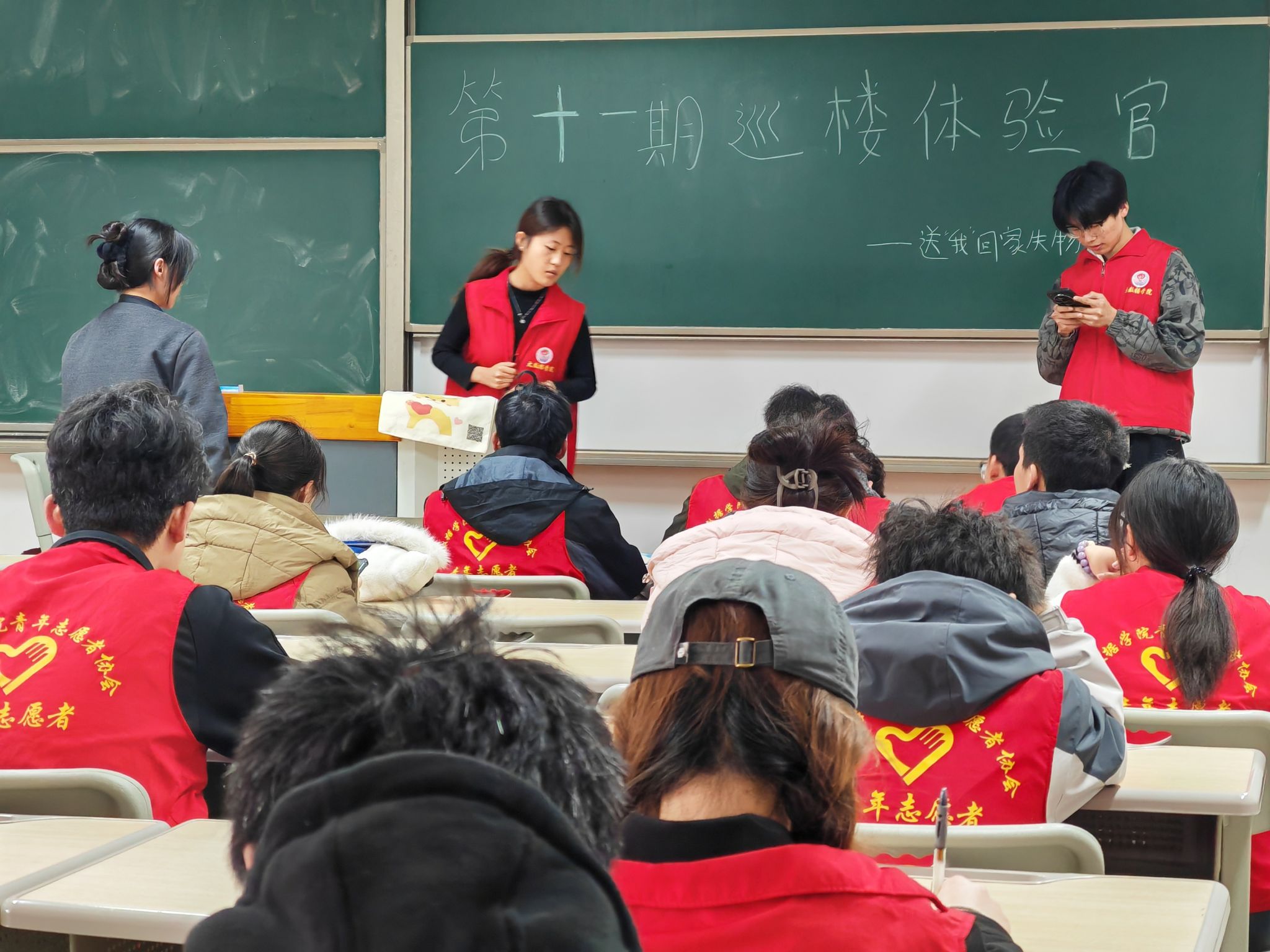 2025年3月19日,“青马工程”完骨中阶七班的学员们化身校园“守护天使”与大数据学院青年志愿者协会“送我回家”失物招领志愿服务专项支队紧密携手,以实际行动践行奉献精神,为校园文明建设添砖加瓦迎来了一场满含温情的暖心行动——“为失主寻失物,为失物寻归处”巡楼体验官活动。