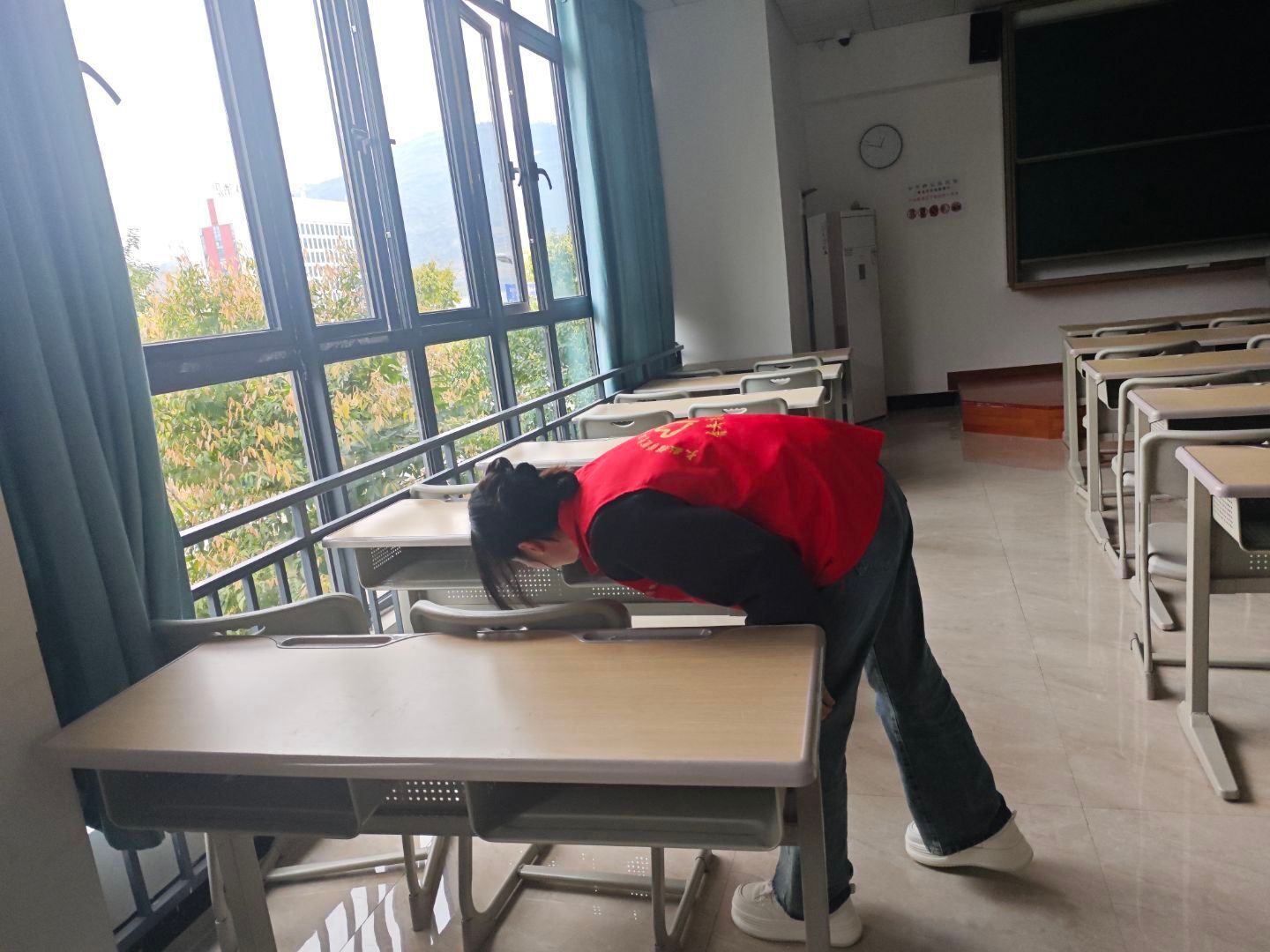 “青马工程”完骨中阶七班的学员们满怀热忱,奔赴各自负责的教学楼。学员们两两一组,配合默契。他们进入每间教室,先是扫视课桌上是否有遗留物品,接着俯身仔细检查桌椅下方,连教室的角落、讲台周边都不放过。一旦发现失物,便小心地将其放入收集袋,并贴上标签。学员们有条不紊地开展工作,遇到难以判断归属的物品,大家围在一起热烈讨论力求准确登记。学员们认真负责,严格按照流程,不放过任何一个可能藏有失物的地方,用实际行动诠释着青马学员的担当。整整一个多小时,学员们脚步不停。他们不仅专注于搜寻失物,还主动整理凌乱的桌椅,关闭不必要的电器设备,让教学楼的每一间教室都整洁有序。活动结束后,所有失物被妥善安置。