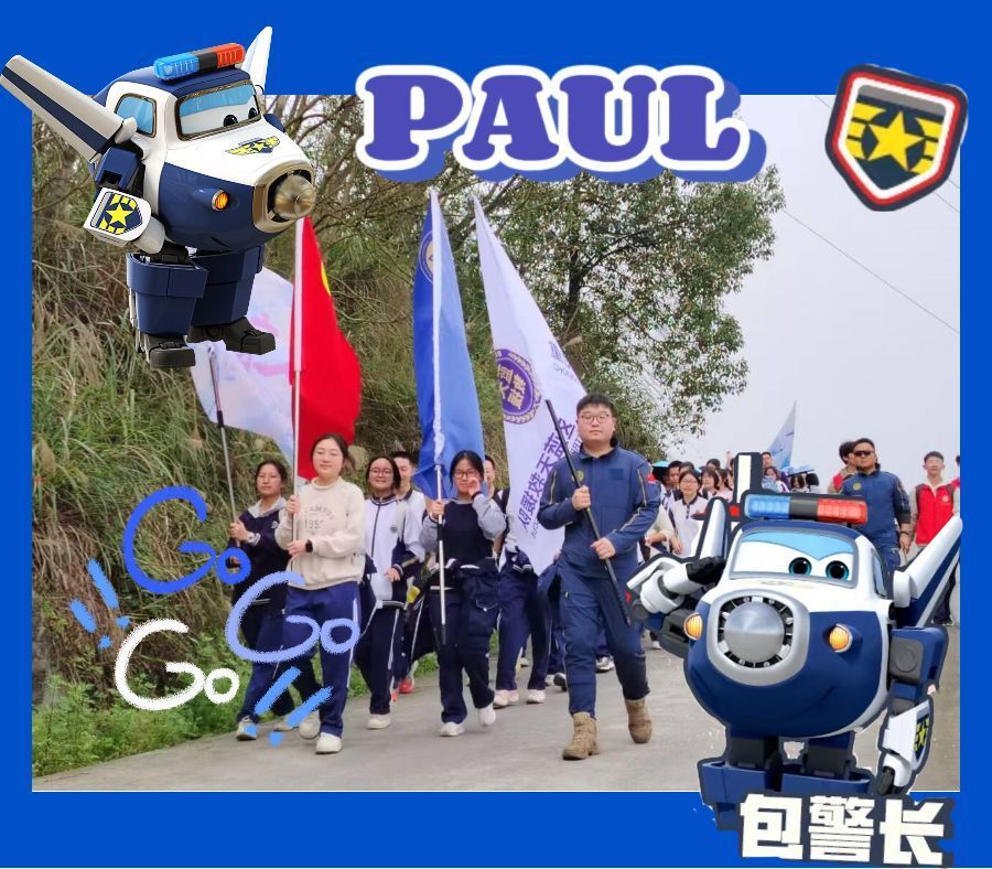 用脚步丈量山川,在队伍后方,一群“小飞侠”正背着鼓囊囊的“超级装备”,化身“小爱同款治愈天使”,齐心协力,同学间互帮互助,“同学,水壶装满了吗?”“脚踝疼不疼?喷雾随时待命哦!”他们时而化身“人形导航”,时而变成“移动补给站”,他们总能在山野间变出意想不到的成长魔法,引导着同学们走过32公里的路程,蓝色校服与红色马甲交织成一道流动的风景线,连山风都忍不住哼唱:“有你们在,冒险也能变童话!”