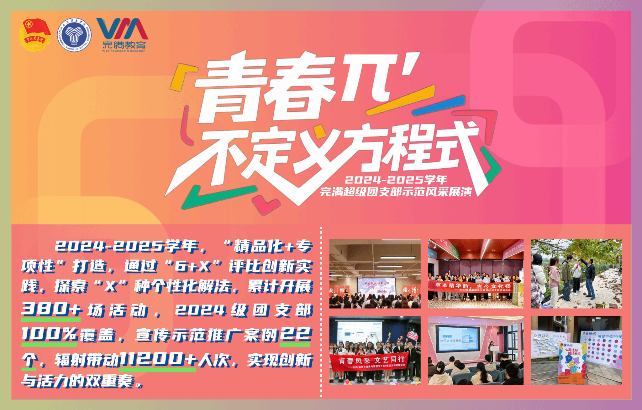 当数学的无限符号π与团支部的活力碰撞,当“不定义”的方程式解锁团支部创新突破的密码,2024-2025学年,各基层团支部通过“6+X”创新实践,打造“X”种个性化解法,累计开展380+场活动,2024级团支部100%覆盖,宣传示范推广案例22个,辐射带动11200+人次,实现创新与活力的双重奏。每个基层团支部都是独特的变量组合,通过“6+X”评比创新机制,打破传统班级活动的边界,进行着每一场关于无限可能的青春实验,让青春在多元碰撞中迸发无限能量。