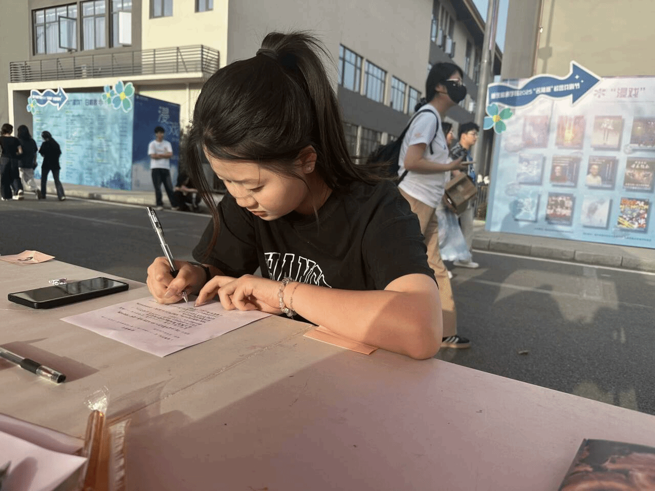 随着第一棒同学给出精彩的接续内容,故事如被点燃的烟火,一路盛放。有人顺着既定情节,细腻描绘环境,渲染出神秘氛围;有人大胆转折,抛出意想不到的角色与冲突,引得众人拍案叫绝。全程无人组织,却默契十足,每位同学都精准把握节奏,既承接上文,又巧妙拓展,让故事脉络不断延伸。从校园冒险到奇幻异世界的冒险,情节在你来我往间愈发精彩。当故事发展到“当那个拥有神秘礼物的人打开礼盒的瞬间,一道奇异的光芒笼罩了整个小镇,小镇上所有的电器设备都开始不受控制地疯狂闪烁,紧接着,时间仿佛凝固了一般,人们保持着各种动作,定格在原地”时,现场气氛更是被推至高潮,同学们热烈讨论,思维碰撞出绚烂火花。