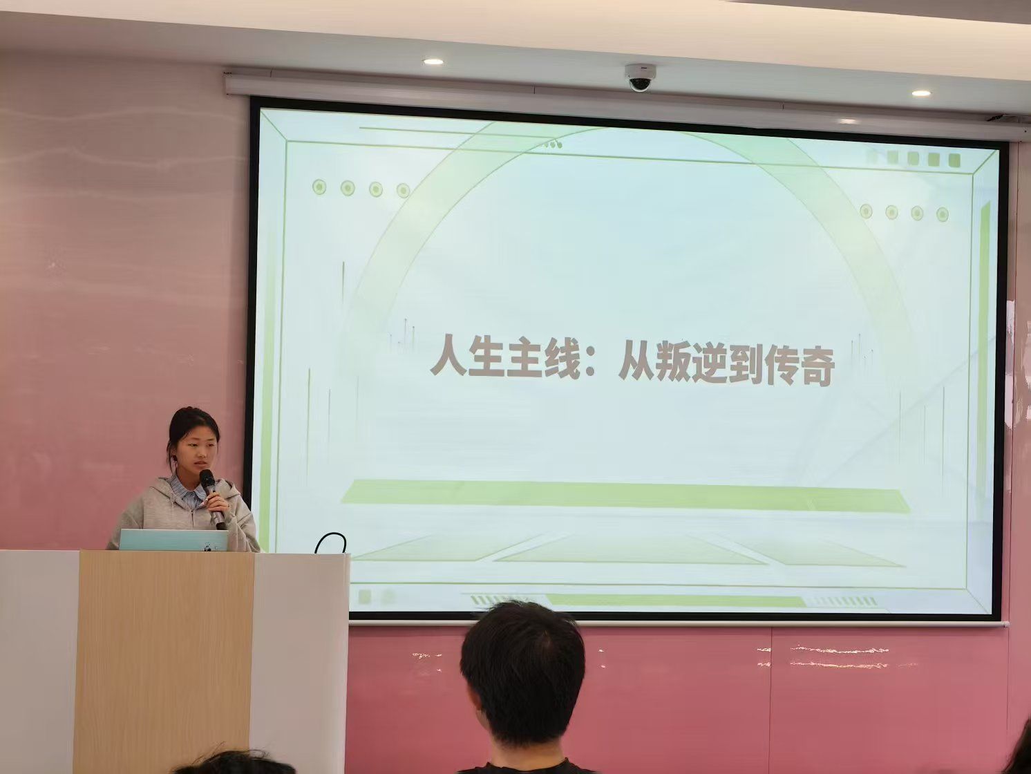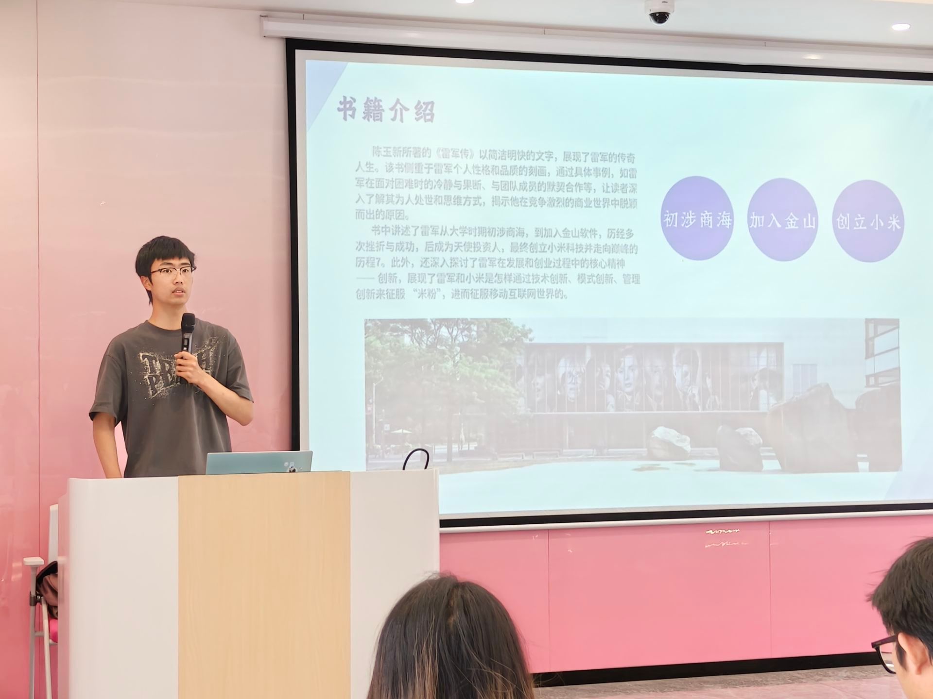 随后,来自各书院的学生代表与完骨中阶五班学员依次围绕大咖传记主题分享了人物传记。韩以飞同学通过《雷军传》解构“风口论”的商业逻辑,揭示从金山到小米的创业方法论;乔布斯传记分享者则聚焦“现实扭曲力场”,剖析科技创新与美学追求的融合之道;完骨五班汤兰兰同学以《杀死一只知更鸟》的社会学视角,阐释正义精神的时代价值;毕鸿雁同学借《平凡的世界》展现奋斗者在大时代中的精神图谱,多元文本的深度碰撞为现场注入思维活力。