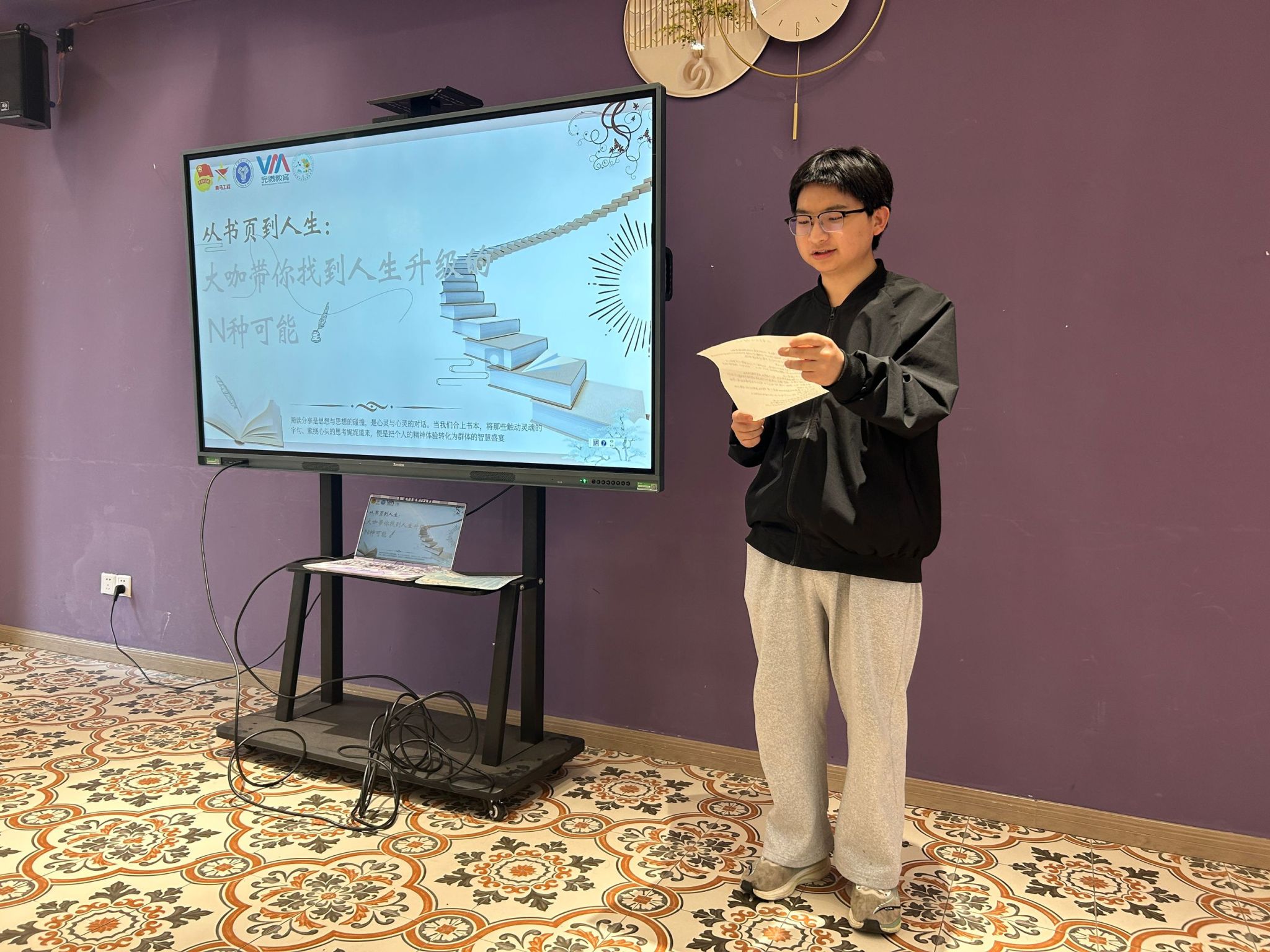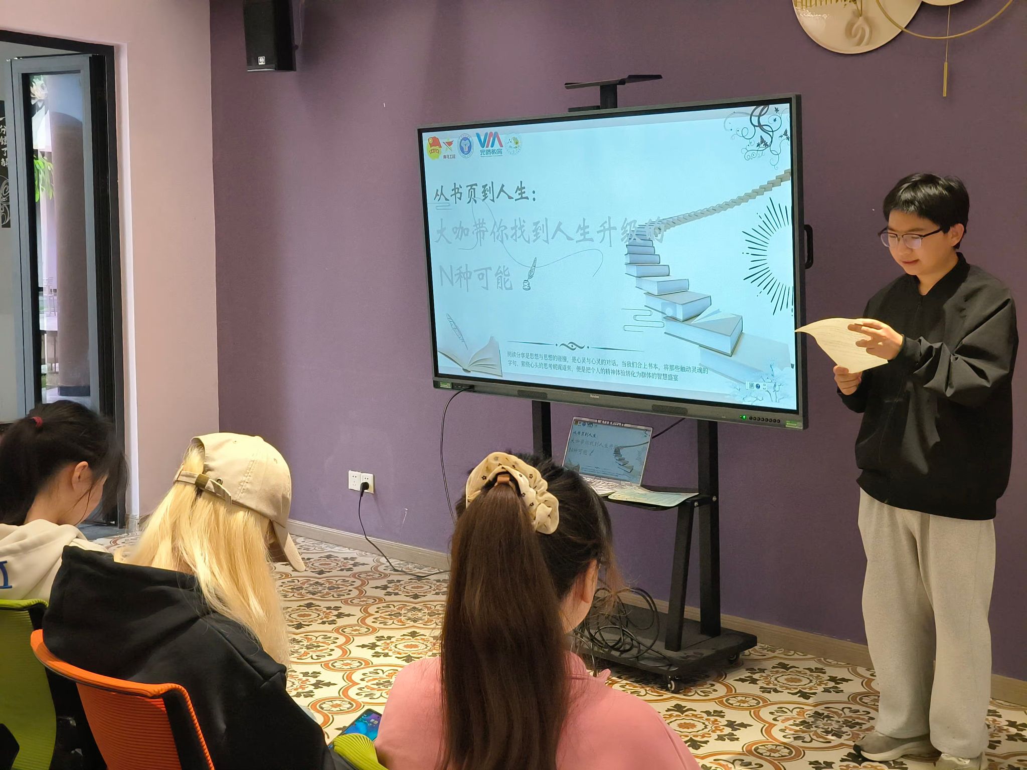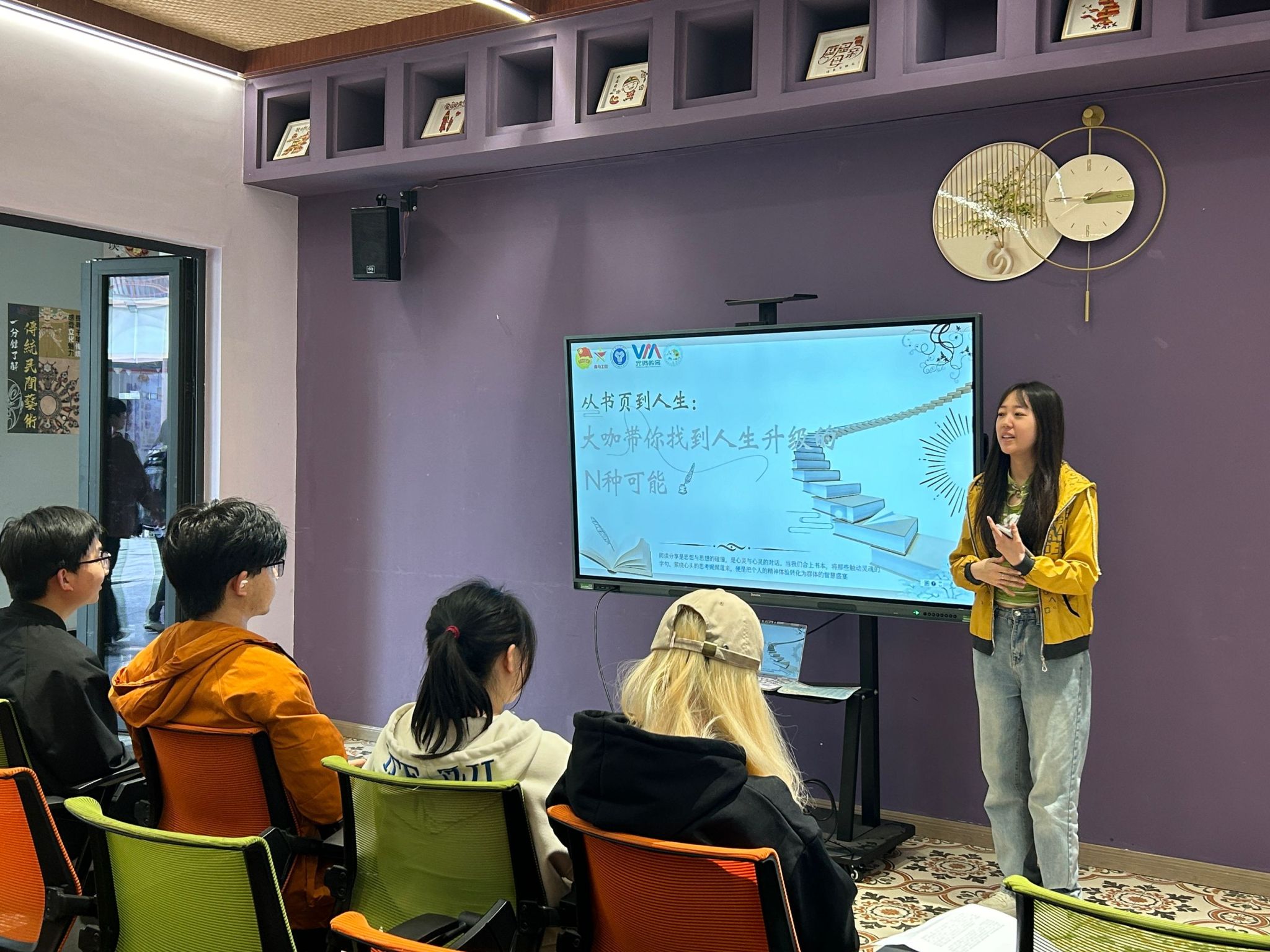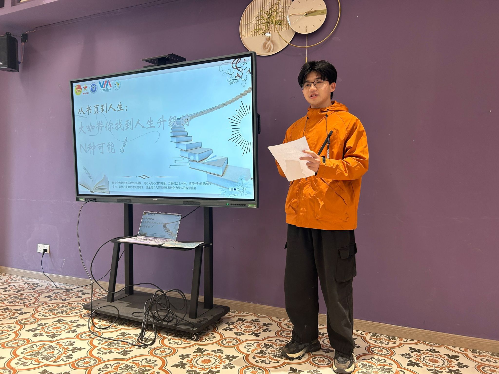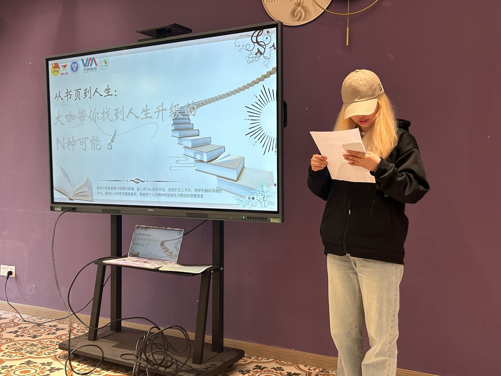 世界读书日的这场阅读分享会,对我来说是一次难忘的经历。在“思想领航”环节,我尝试用情景演绎的方式分享了我喜欢的书中金句,得到了同学们的认可,这让我备受鼓舞。这次分享会也让我看到了自身的一些不足,比如在表达和逻辑方面还需要加强。但我相信,通过不断地阅读和分享,我能够不断提升自己!