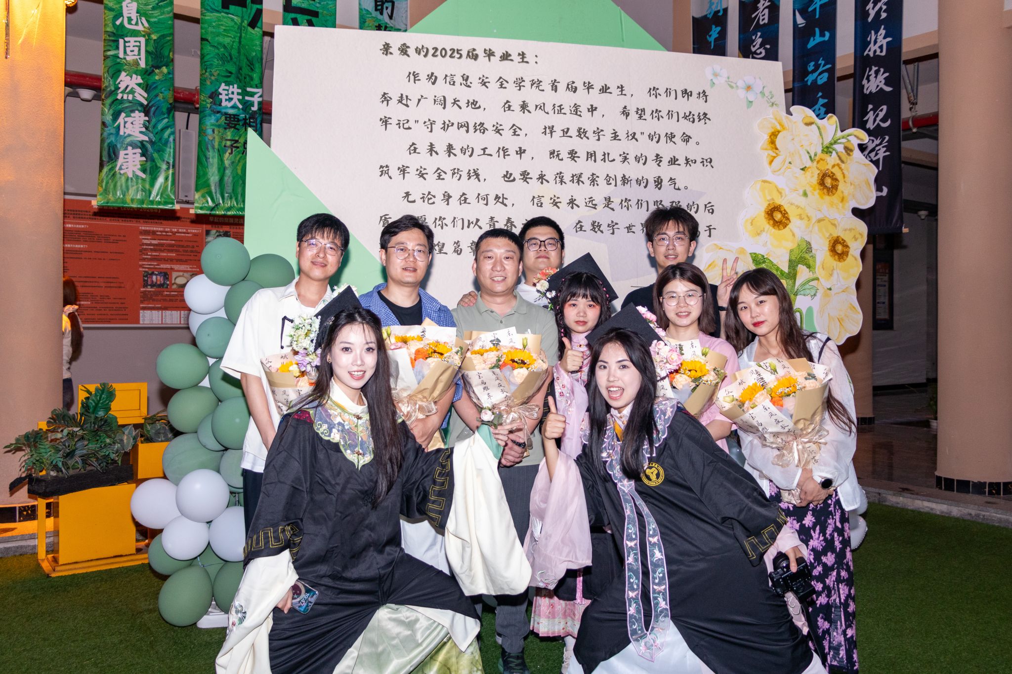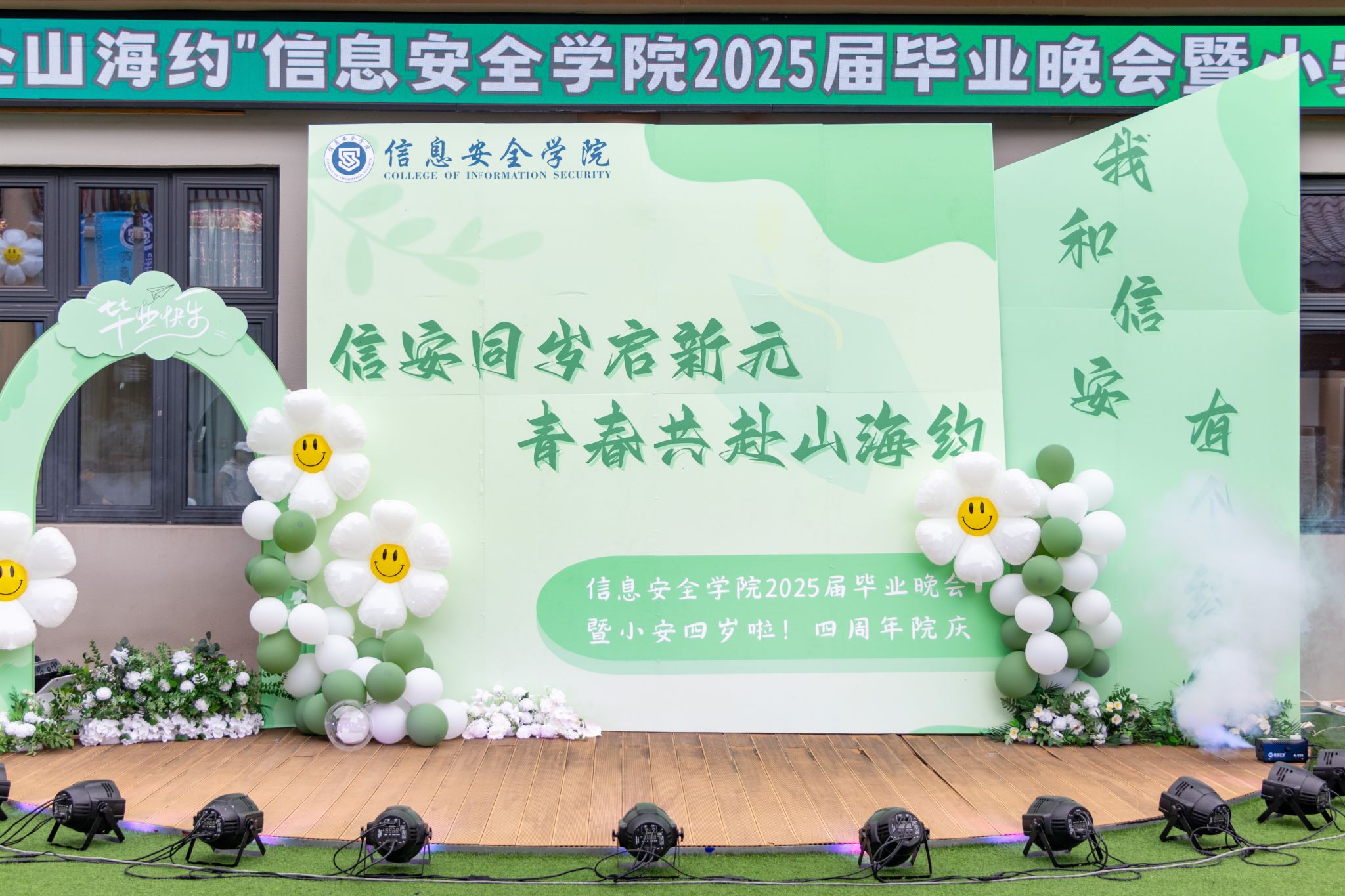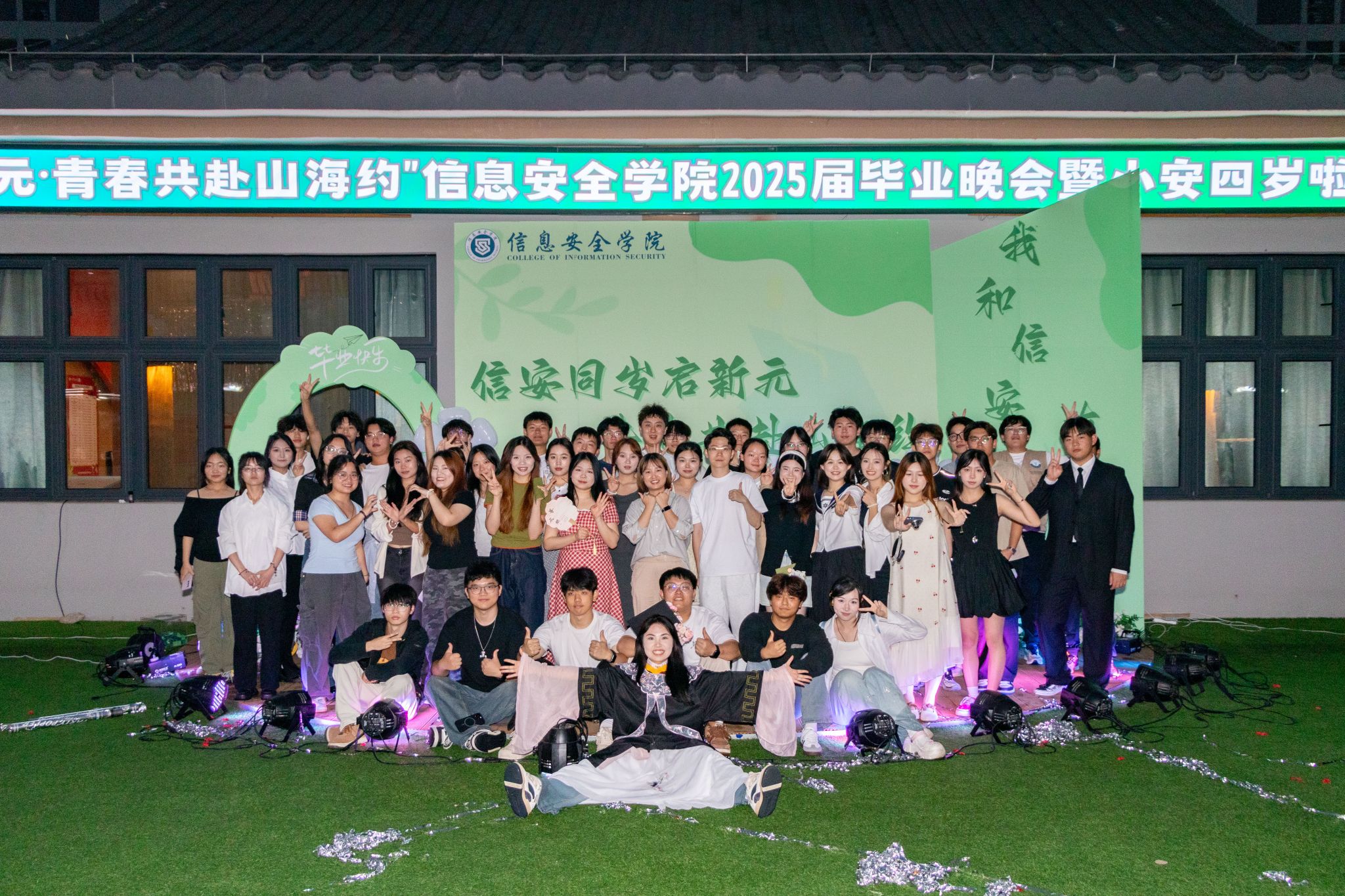 四年前,信安是棵小苗苗;四年后,它已长成能遮风避雨的大树。首届毕业生们在这里“打怪升级”,如今揣着定制U盘(内含老师们的唠叨压缩包)勇闯新地图,就像晚会最后的全员合影——有人比耶,有人嘟嘴,但所有人的眼神都在说:“信安,我们约好下次见!”