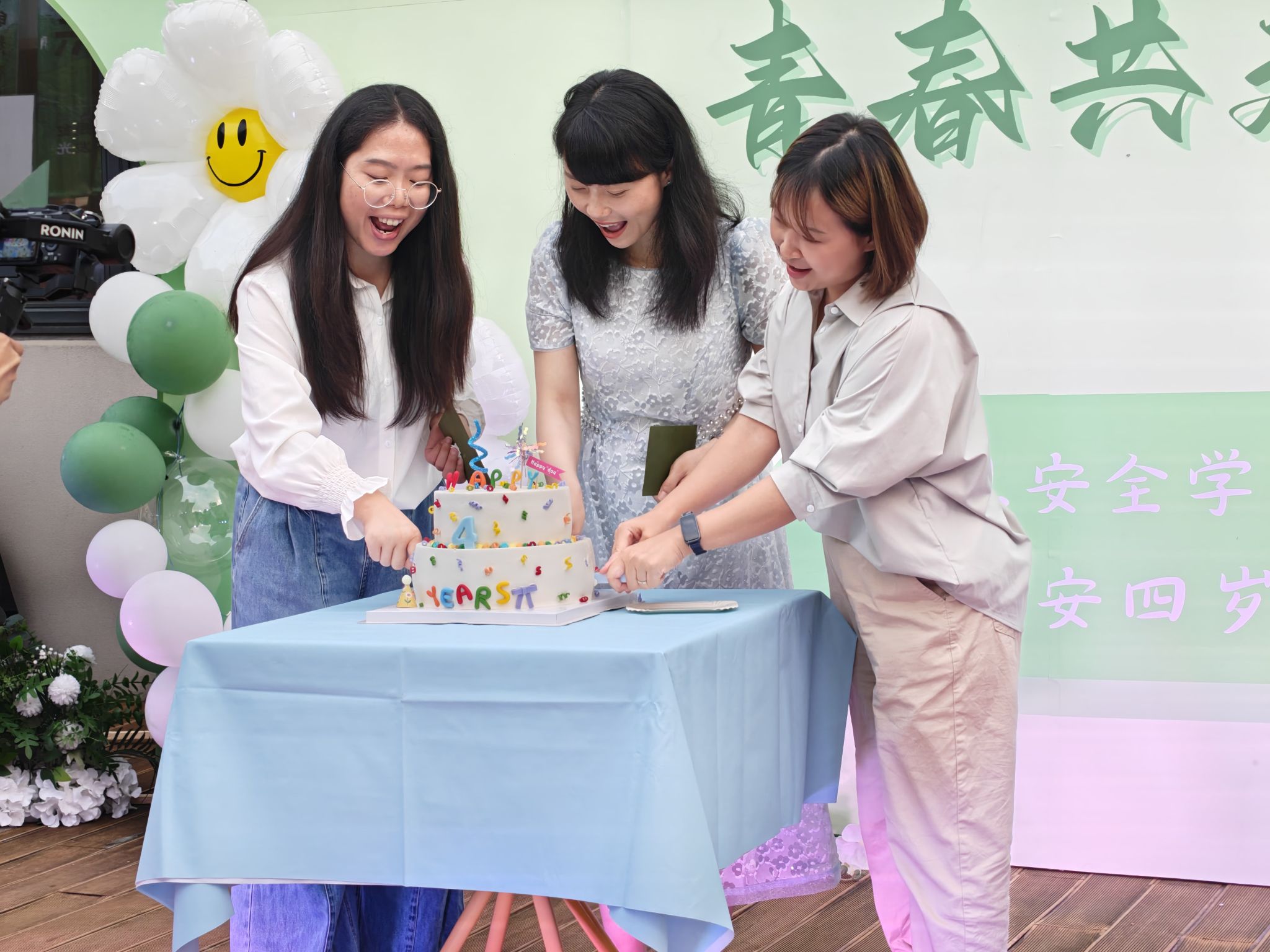 当双层院庆蛋糕缓缓推出时,全场不约而同发出惊喜的欢呼。这不仅仅是一个蛋糕,更是承载着四年时光的甜蜜见证。院长王宁、学工副院长尹金维和代理教学副院长周小艳相视一笑,手中的蛋糕刀轻轻落下,仿佛在为毕业生们共同的成长故事写下新的篇章。
