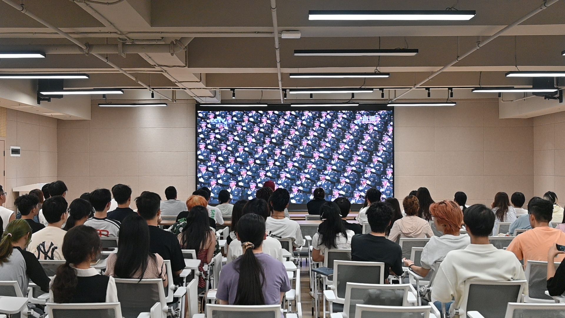 9月3日上午9点,纪念中国人民抗日战争暨世界反法西斯战争胜利80周年大会在北京天安门广场隆重举行。校团委组织教师专职团干部、青年学生团干部、共青团员等100人在完满教育综合服务中心516综合路演中心集体观看线上直播,认真学习习近平总书记重要讲话精神。