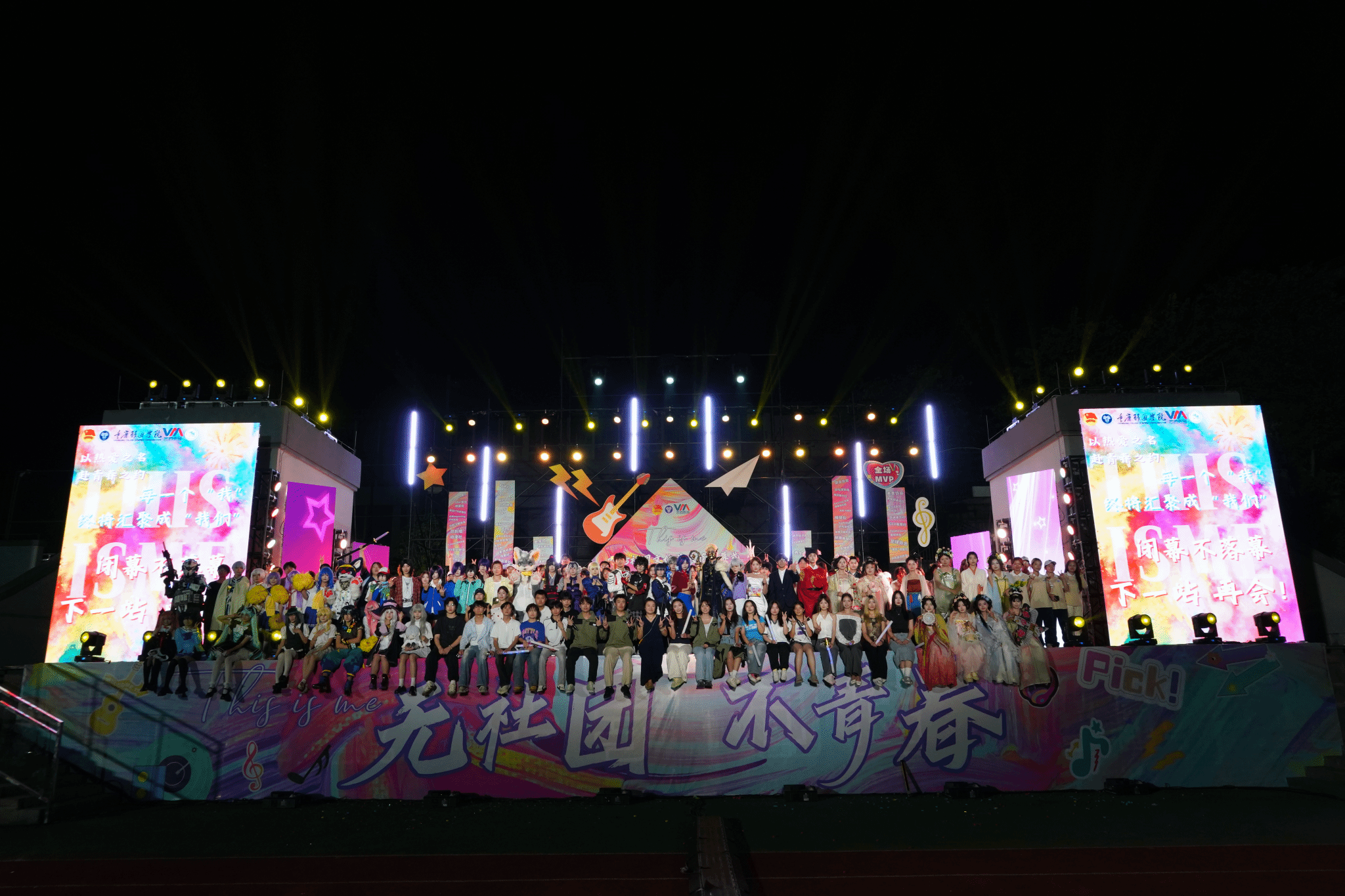 当暖红灯光铺满绿茵场,当《最美的太阳》的合唱声萦绕耳畔,9月27日17:30-20:30,“This is me”——2025社团文化艺术节闭幕式暨文艺汇演在綦江校区校田径场温情落幕。这不仅是一场视听盛宴的终点,更是一场属于每一个社团人的青春宣言——从“我”的独白到“我们”的合唱,6000余名师生共同见证了这场历时数月的社团成长之旅。