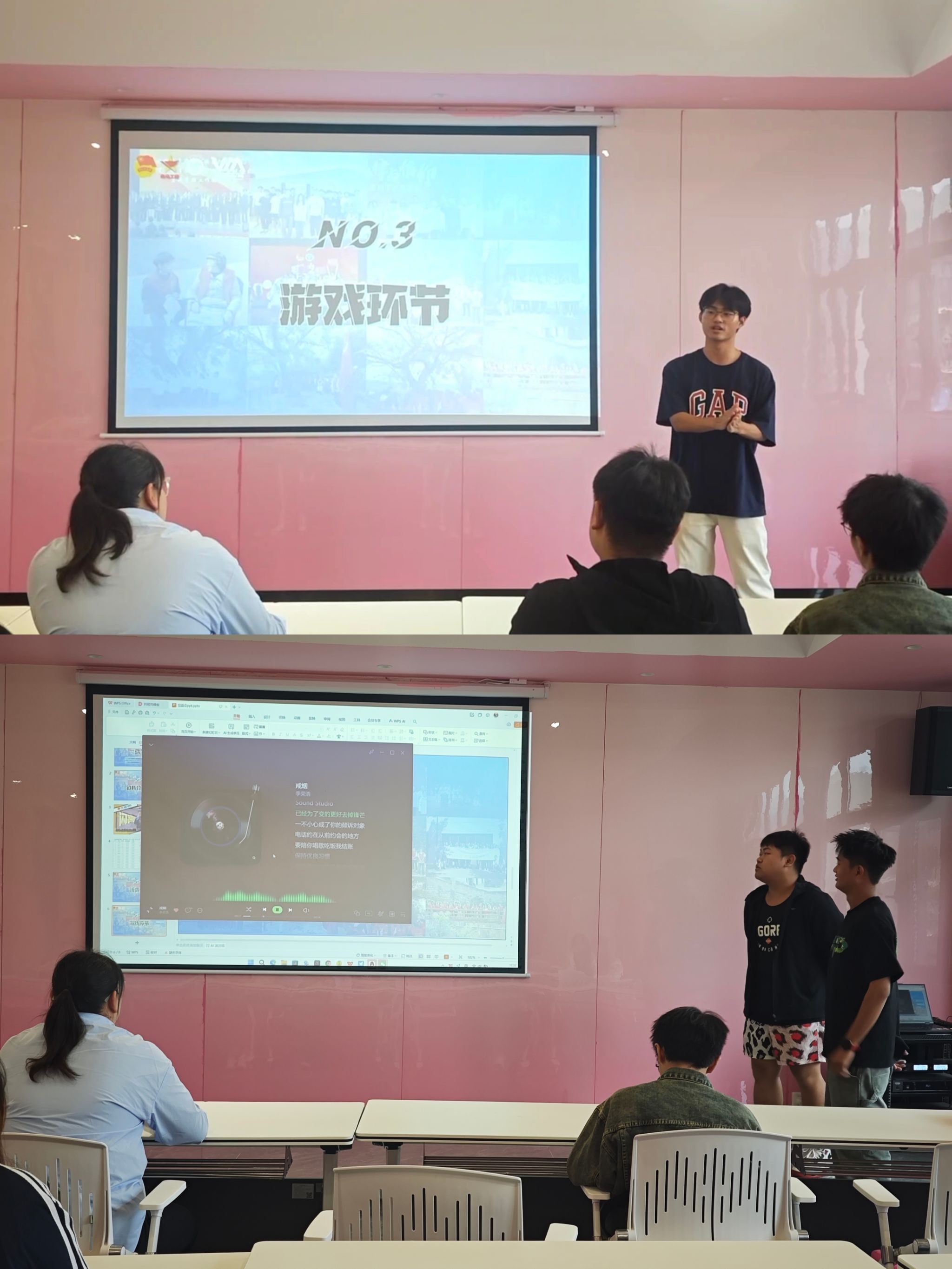 为活跃现场氛围、加深彼此情谊,活动设置了“逢三必过”互动游戏。规则为同学们依次报数,遇到含“3”或3的倍数的数字时需拍手代替,失误者需现场演唱歌曲。游戏中,大家全神贯注,偶尔的失误引发全场欢笑,输了的同学也大方献唱,歌声与掌声交织,现场气氛热烈融洽,进一步拉近了成员间的距离。