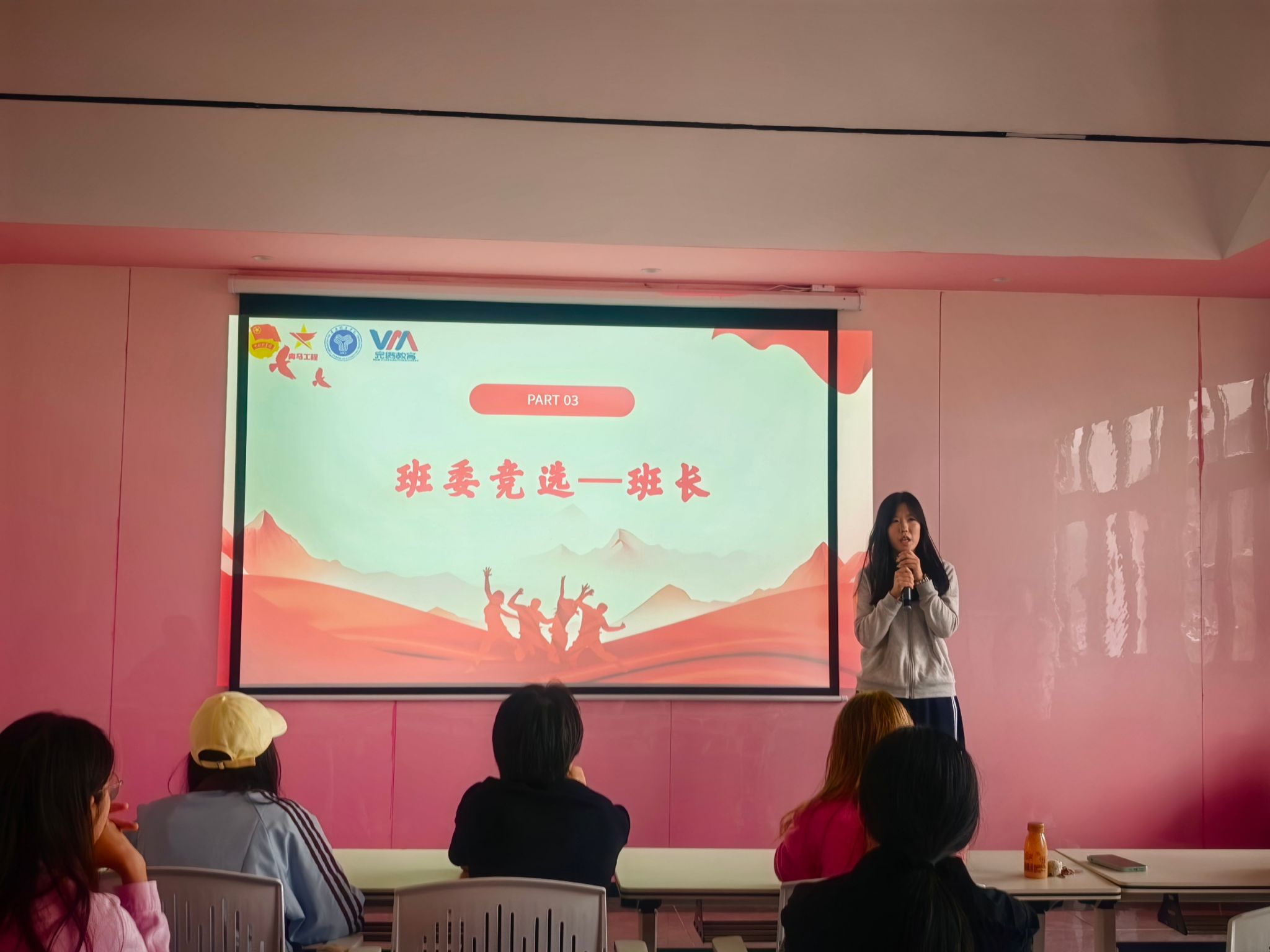 互动环节结束后,班委竞选环节紧随其后。学员们纷纷主动上台,结合自身优势与服务规划阐述竞选理念:“我擅长活动策划,希望能组织更多特色团建,提升班级凝聚力”“我有丰富的宣传实践经验,曾撰写过多篇新闻稿、负责多场活动海报制作,若当选将做好班级宣传工作”……每一句真诚承诺都彰显着学生骨干的责任意识与服务担当。最终,经全体学员无记名投票,成功选出班长、团支书等核心班委成员,为班级后续高效运转奠定组织基础。