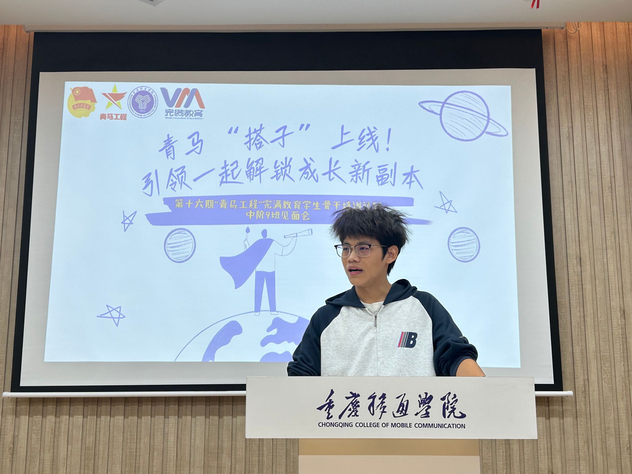 随后,各学员依次上台自我介绍。大家围绕专业背景、兴趣特长与青马学习目标展开分享,既有对理论知识的探索热情,也有对实践服务的积极规划,现场交流氛围轻松热烈,为“搭子”结对埋下伏笔。