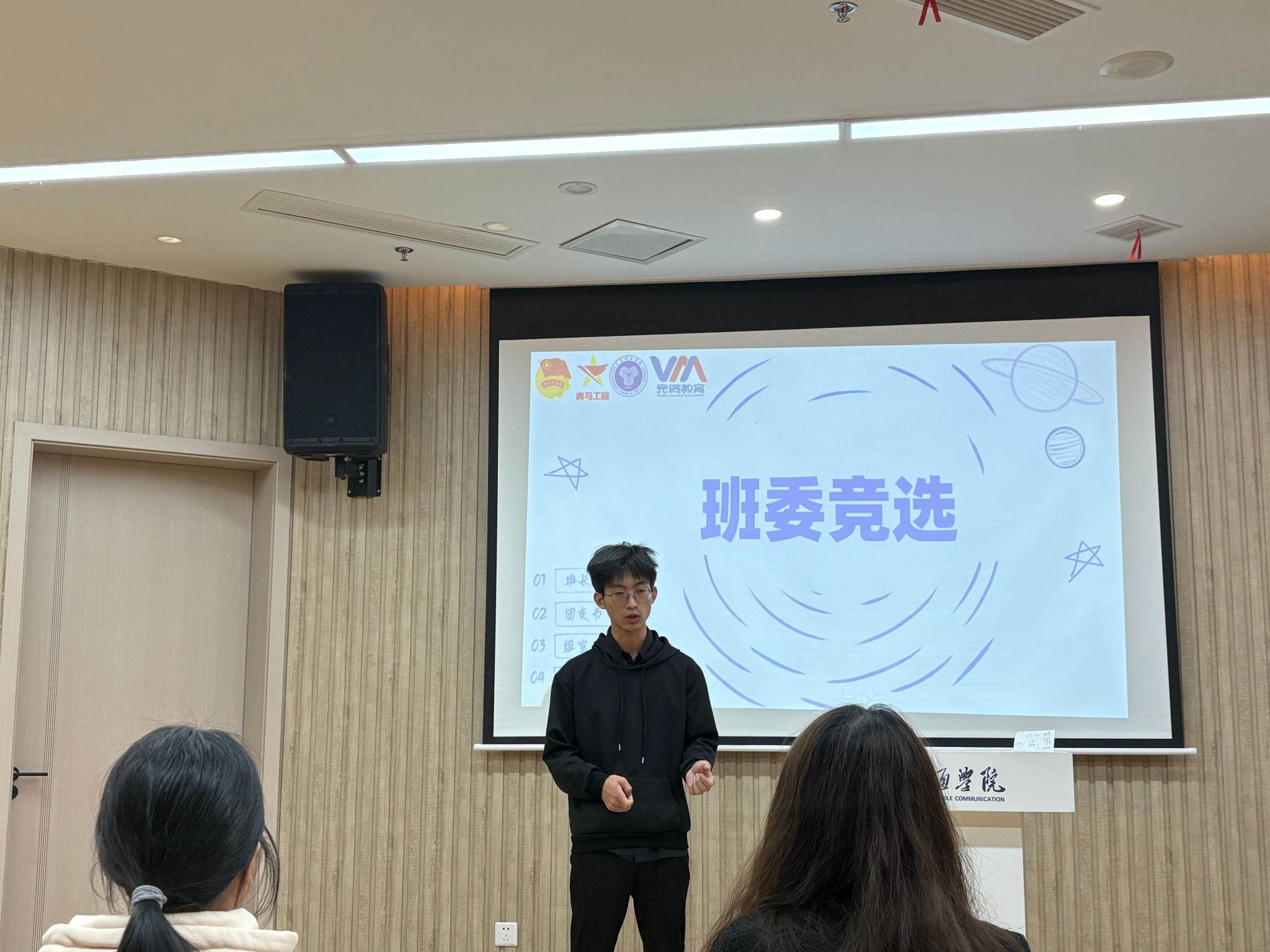 自我介绍结束后,见面会进入创新形式的班委竞选环节。学员们踊跃上台,结合自身优势与服务设想,竞选班长、团支书等岗位,纷纷表达了为班级服务、带领同学共同成长的意愿。与以往不同,学员们在阐述自身优势、服务设想后,通过表演才艺的方式进一步展现个人风采——歌曲、魔术、个人运动技能等形式轮番呈现,才艺表演环节成为见面会的“气氛升温剂”。既传递了为班级服务、带领同学成长的意愿,也让竞选过程更具活力与记忆点。