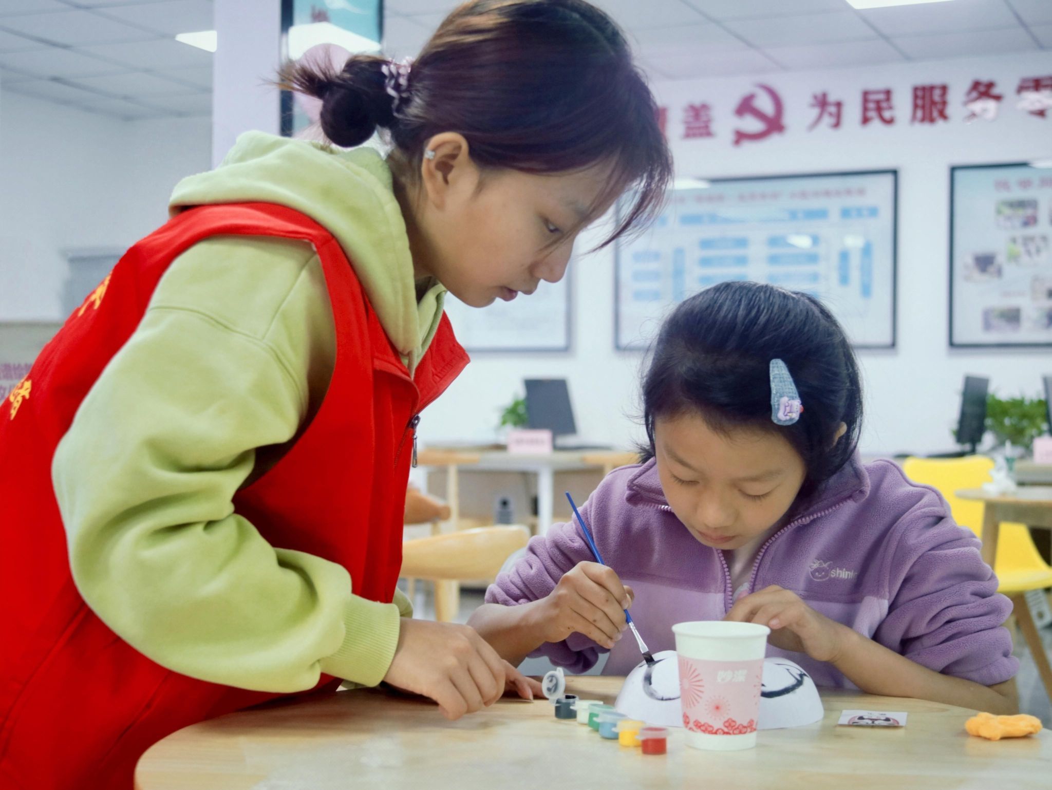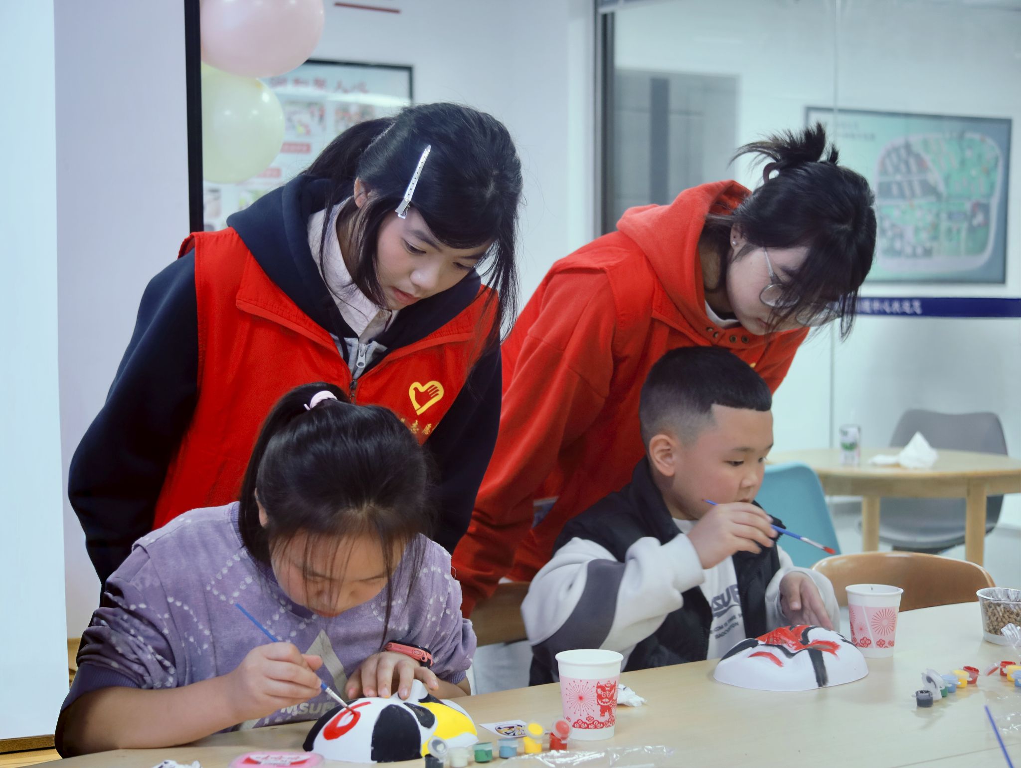 创意脸谱创作环节成为孩子们展现想象力的舞台。志愿者为每位小朋友分发空白脸谱胚、丙烯颜料、画笔等工具,孩子们结合此前学到的脸谱色彩、纹样知识,有的选择复刻经典角色,勾勒关羽的红脸忠义,描绘包公的黑脸刚正;有的大胆原创,搭配独特色彩与纹样,赋予脸谱专属的童年创意。志愿者在旁协助勾勒轮廓、提供创意建议,耐心指导调色与上色技巧。一张张空白脸谱胚,在孩子们的笔下逐渐变得色彩斑斓、个性十足,既饱含传统韵味,又充满童真童趣。脸谱映童趣,文脉润童心,这场妙笔生花的邂逅,让传统有了温度,让童心有了厚度。