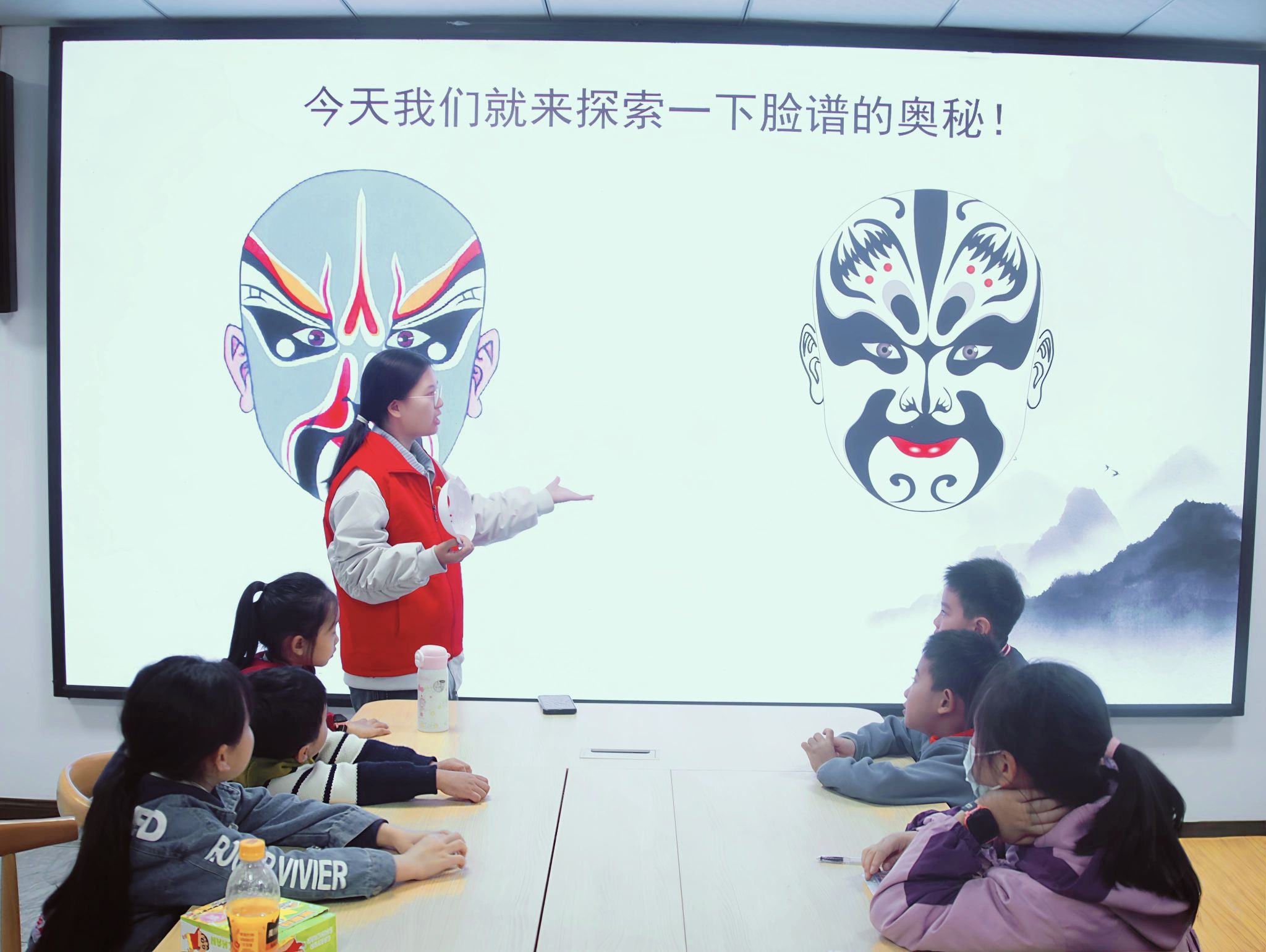传承非遗,浸润童心。为宣传京剧脸谱的文化内涵,培养青少年儿童对京剧脸谱历史脉络的认识,完满课堂志愿服务专项支队于2025年11月9日在新街子社区开展生动有趣的“脸谱绘韵,戏传童心”——青少年儿童文化课堂志愿服务活动。活动旨在通过“文化讲解—技巧学习—创意创作”等丰富形式,鼓励儿童自主设计纹样,将脸谱绘制与戏曲文化深度融合,让孩子们感受京剧脸谱的艺术魅力,了解其作为“中华民族正义符号”的精神价值。