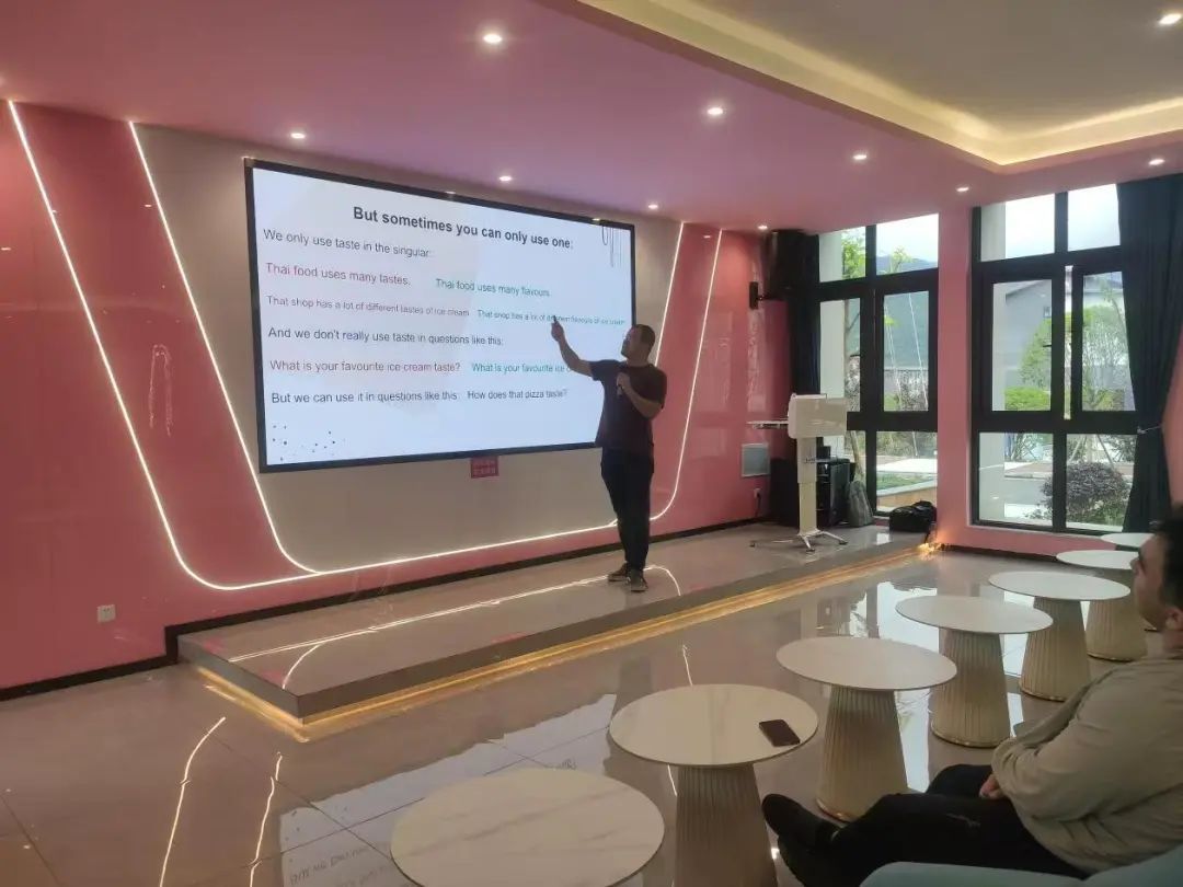 语言文化活动方面,外教Frank带来的幽默语言课堂《Lost in Translation: Funny Language Mishaps and How to Avoid Them》(翻译趣事:那些令人啼笑皆非的语言误解及避免方法)深受欢迎。Frank以丰富的生活实例、生动的教学互动,引导学生发现语言背后的文化差异,现场笑声不断,气氛热烈。与此同时,黄重老师的雅思demo示范课《写作能力提升宝典》则为备考同学提供了系统、实用的写作技巧指导,从逻辑构建到语言表达,为提升雅思写作成绩注入“加速器”。