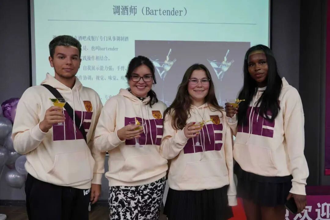 鸡尾酒品鉴,解锁新识:专业调酒师带来25分钟的调酒知识讲解,从种类、品鉴方法到礼仪,细致科普让新生们沉浸式感受调酒、品酒文化,随后开启品鉴环节,更让大家在味蕾体验中加深对多元文化的理解。