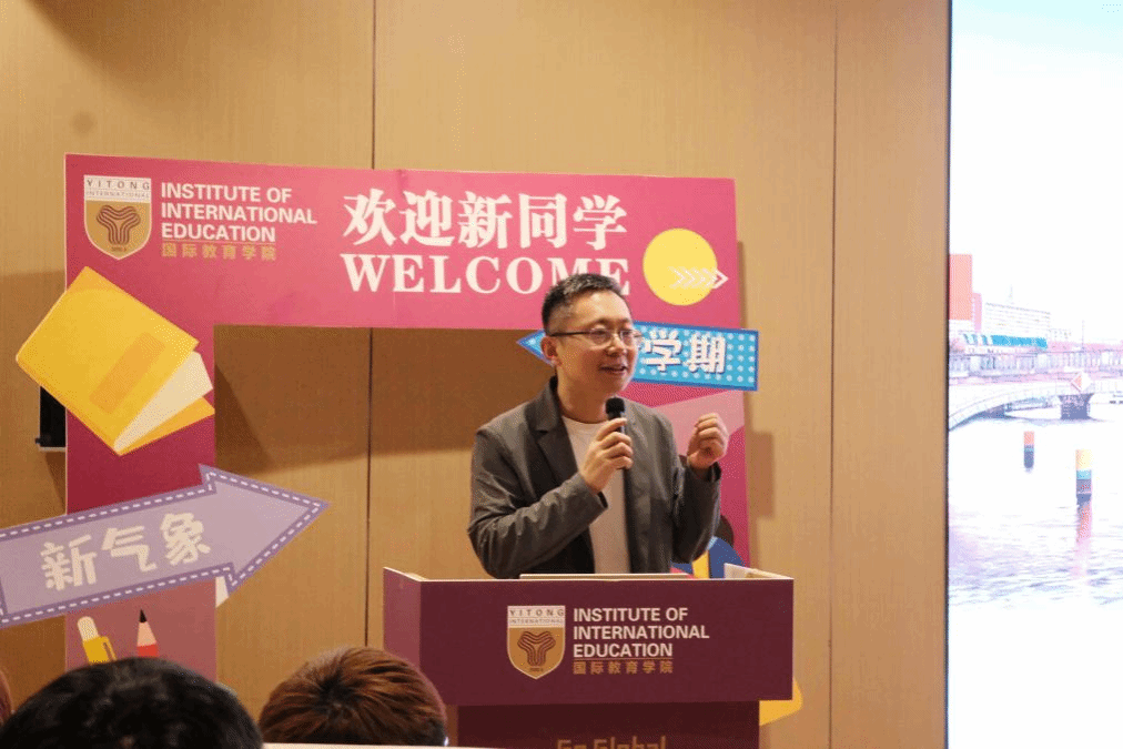 领导总结,寄予厚望:典礼尾声,重庆移通学院常务副校长、綦江校区党委书记王永周上台作总结讲话。他表示,从暖场视频到授旗仪式,从师生发言到聘任环节,整场典礼满是温度与力量,也让他看到了新生们的朝气与潜力。他强调,国际教育学院始终以“培养懂中国、通世界的复合型人才”为核心,不仅配备了优质师资,还搭建了国际合作项目、学生社团、志愿服务等多元成长平台,这些都是学生探索自我、拓展视野的重要支撑。“院旗是责任,相册是陪伴,希望大家带着这份初心,在学业中扎实深耕,在交流中主动探索,把‘Go Global’的口号变成实实在在的行动,未来能自信走向更广阔的世界。”王校的话语恳切有力,为新生们的大学征程注入了信心与动力。