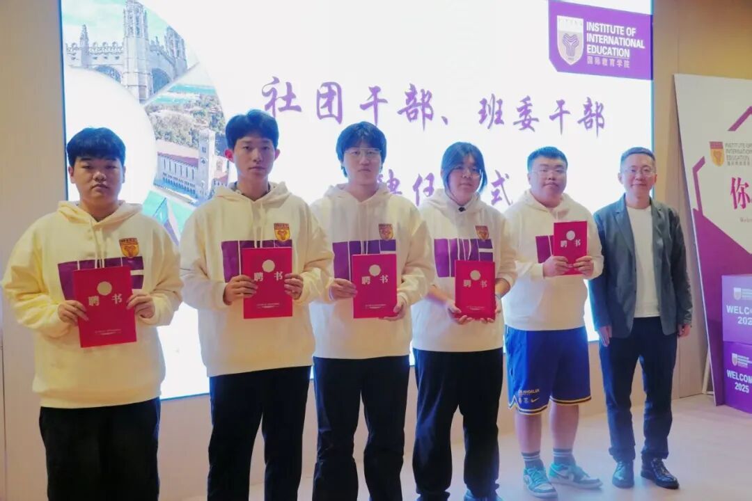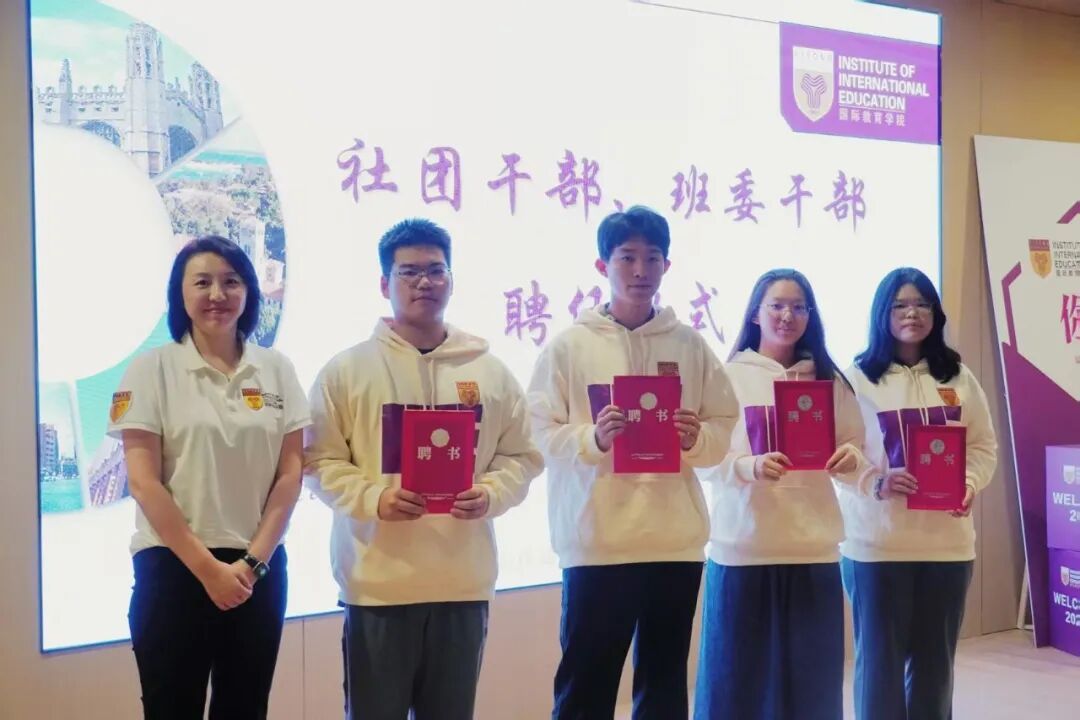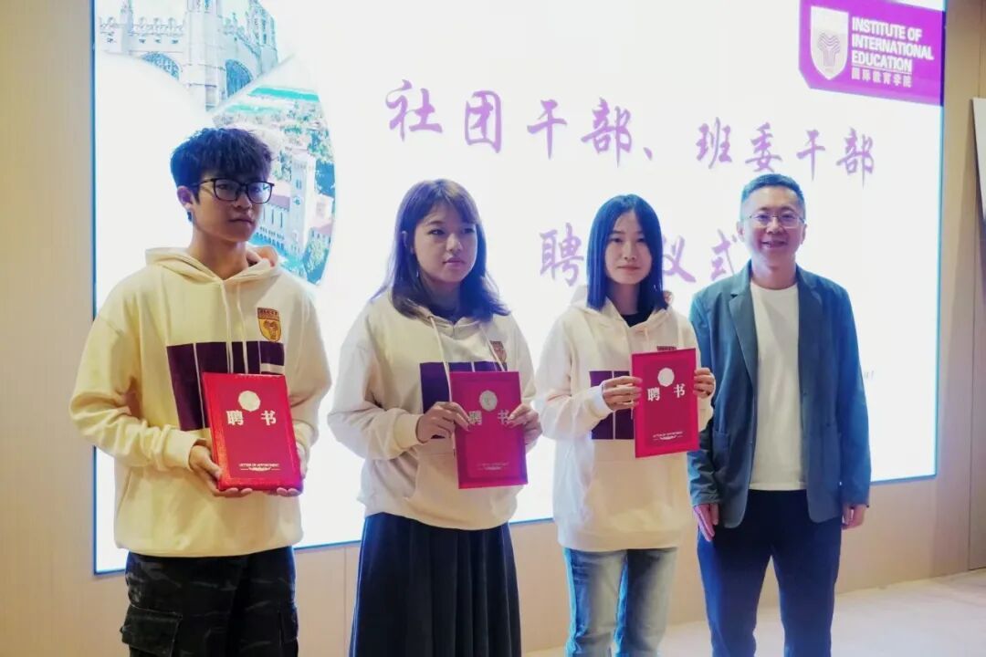 聘任与赠礼,赋能前行:张衍学副校长、姜姝副院长,分别为班委干部与国际语言研习社社团干部颁发聘书,为学生自我管理搭建平台。