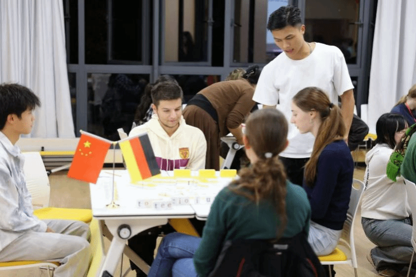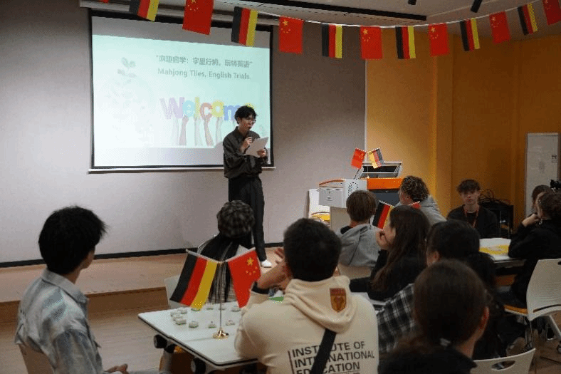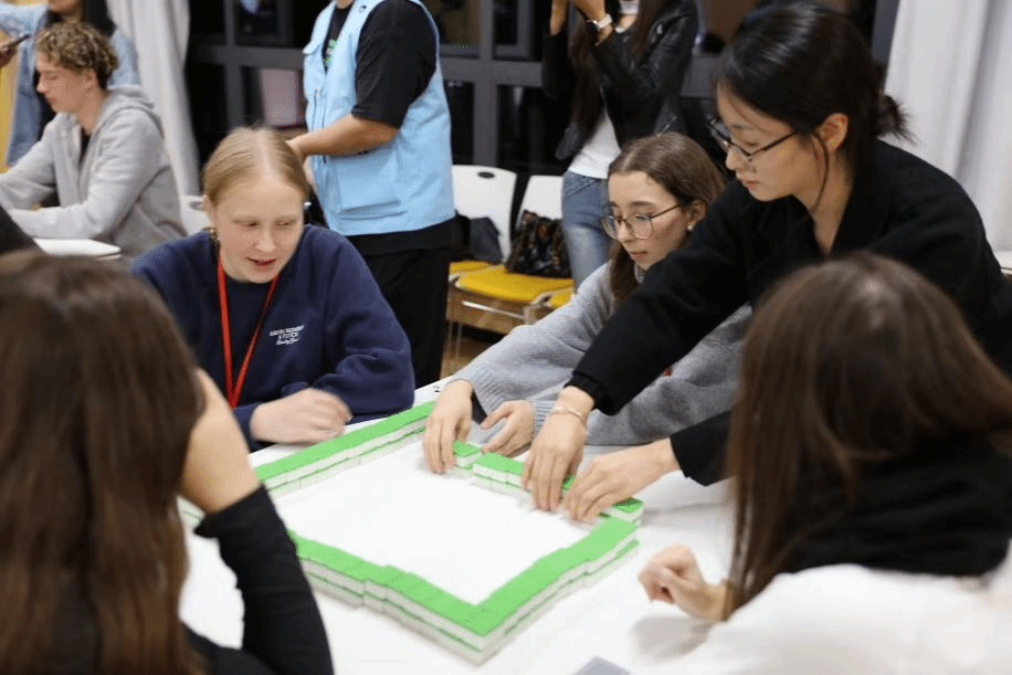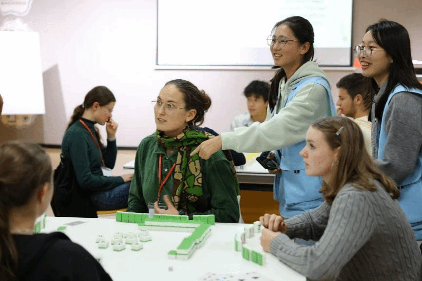 “麻趣启学:字里行间,玩转英语”活动中,志愿者协助完成分组抽签,用通俗语言结合实例讲解英语麻将规则,帮助德国学生快速掌握玩法。比赛中,志愿者穿梭各桌提供实时帮助,及时解答规则疑问、提醒积分方式,保障比赛公平有序。活动后,志愿者主动整理场地,展现责任担当。这场将英语学习与传统麻将结合的创新活动,让德国学生在欢乐互动中既感受英语学习乐趣,又体会中国传统文化魅力。