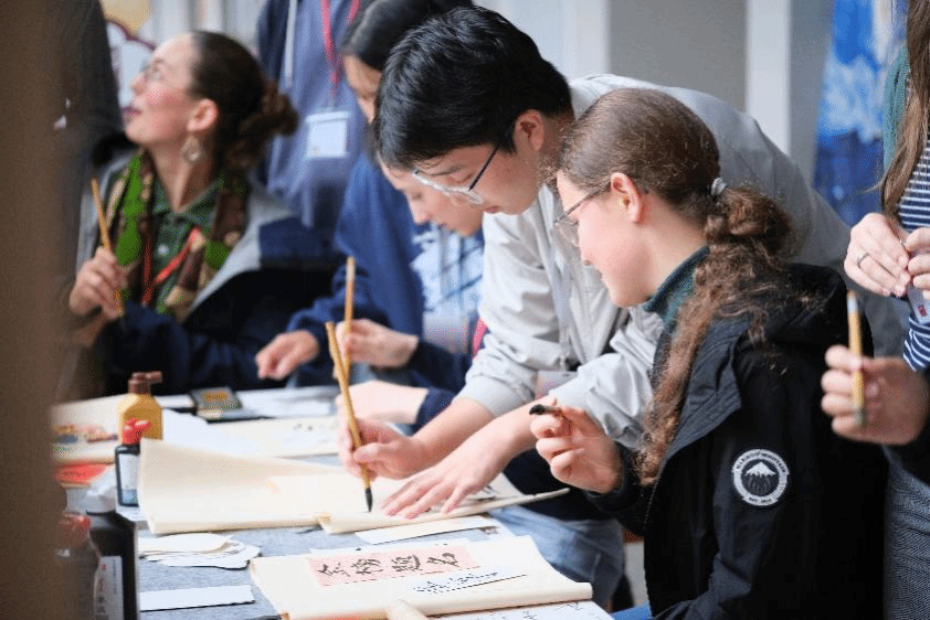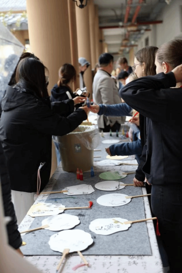 研学活动开营仪式举行,志愿者提前两小时到场筹备,完成设备检查、礼品摆放及文化体验材料分装等工作。仪式期间,志愿者以中英双语引导德国师生入座,并协助开展中国传统文化体验环节,在漆扇绘制、毛笔字学习等活动中耐心指导,帮助德国友人感受中国传统艺术魅力,快速拉近彼此距离。开营仪式各环节衔接顺畅,舞龙舞狮等特色表演更让德国师生沉浸其中,志愿者的细致服务为活动奠定了温暖友好的基调。