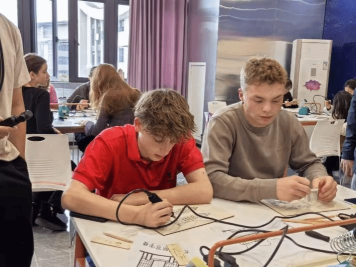 志愿者带领德国学生开展书院参观活动,志愿者化身讲解员,围绕书院的建筑风格、文化理念及功能布局进行详细介绍,引导德国学生参观书院的共享学习空间、文化展示区及特色功能室等。过程中,志愿者结合实例讲解书院制教育模式的特点,以及学生在书院中的学习生活场景,还热情解答德国学生关于校园文化、课余活动等方面的疑问。通过参观,德国学生深入了解了重庆移通学院的书院文化特色,对中国高校的育人模式有了直观认识,进一步增进了对中国校园文化的兴趣。