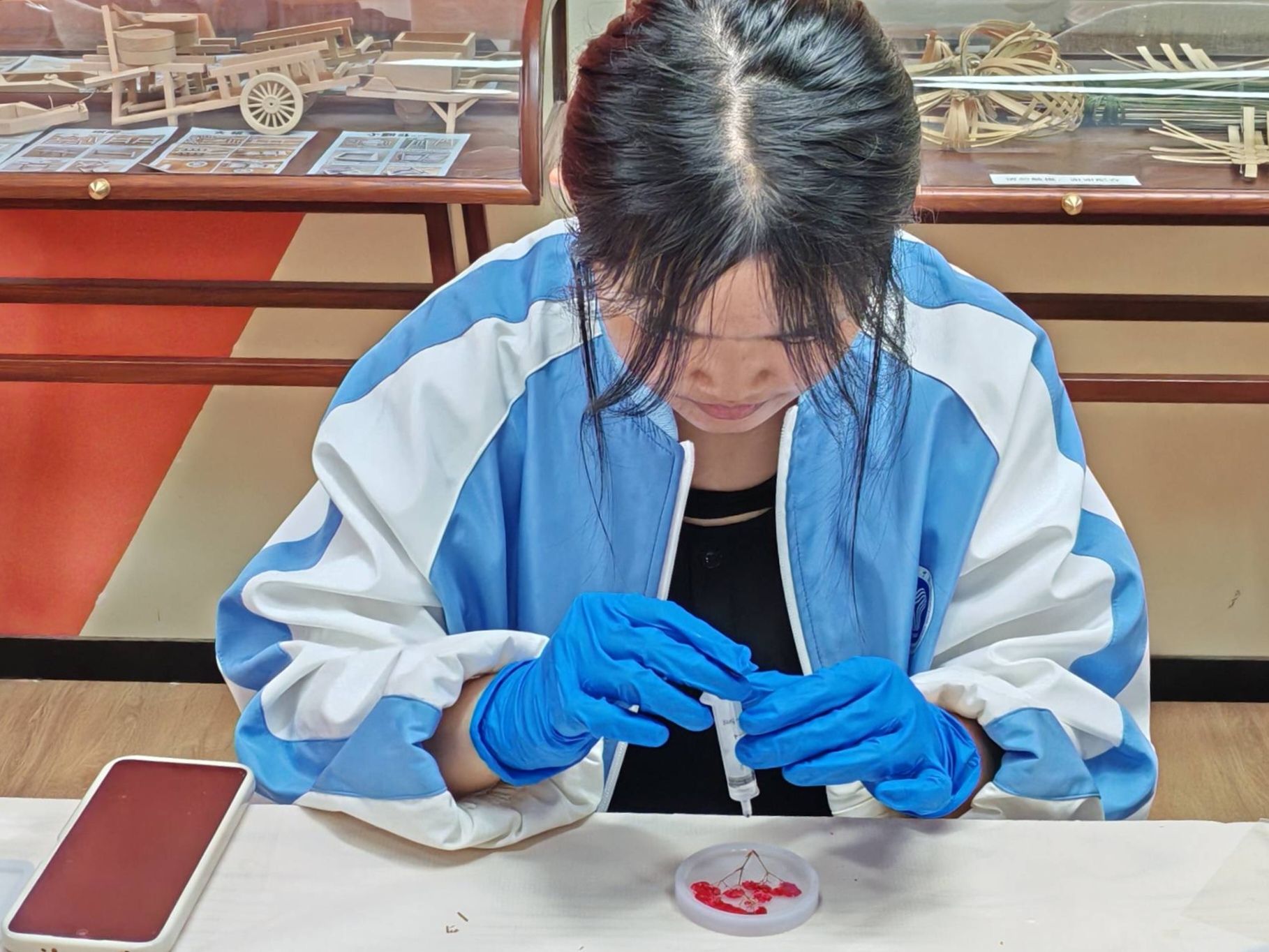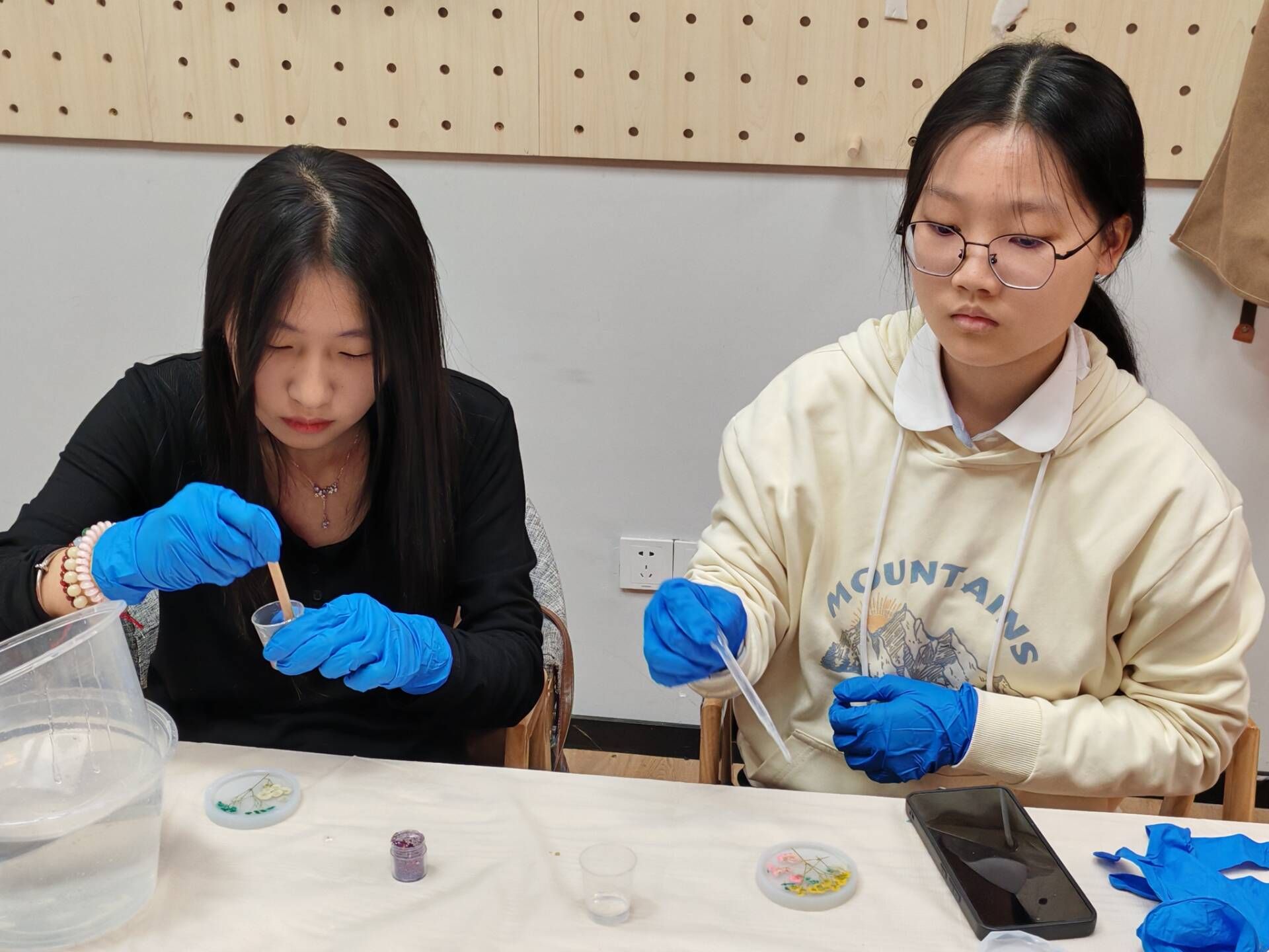本此活动,我们为书院学子提供了丰富的材料选择,包括各种颜色的树脂、颜料以及各式各样的模具。制作环节中,学生们在老师的指导下,利用模具、颜料和装饰品,发挥自己的想象力和创造力,制作出了形态各异、色彩斑斓的滴胶作品。有的学生制作了精美的饰品,有的学生则创作了装饰性的小摆件。在制作过程中,参与者们相互交流、学习,共同探讨滴胶制作的技艺和心得,活动现场洋溢着浓厚的艺术氛围和学术气息。